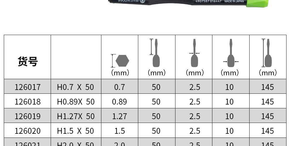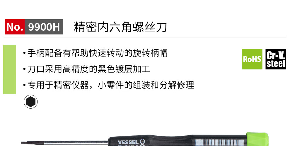 VESSEL Weiwei 9900H precision hexagonal screwdriver computer mobile phone camera watch repair tool H0.89X50mm