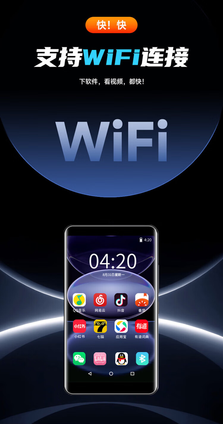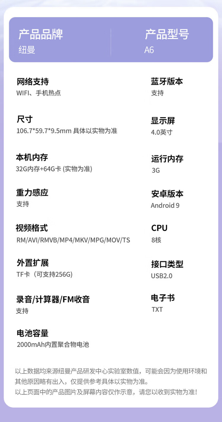 Newman A6 smart mp3/mp4 WiFi Internet access mp5 lossless music player Walkman Bluetooth online listening to music and watching e-books and videos 96G Android 9.0