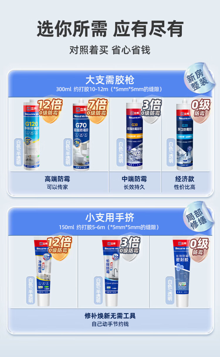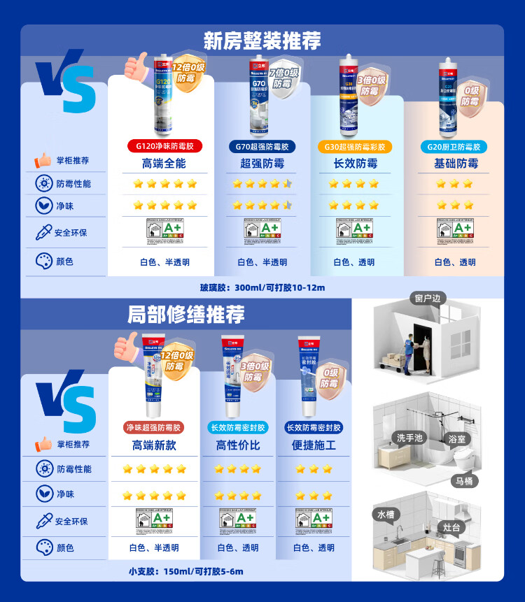 Nippon Paint 12x Grade 0 Mildew-Resistant Glass Glue Kitchen and Bathroom Sealant Waterproof Beauty Glue G120 Clean Odor Environmentally Friendly White 300ML