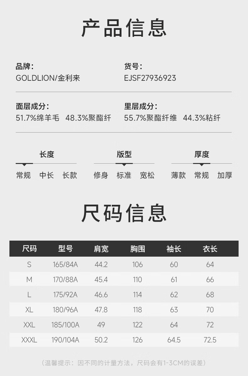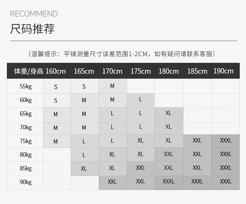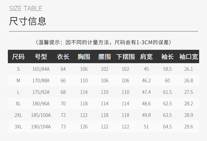 China (cm) 165 / 88-90 170 / 96-98 175 / 108-110 180 / 118-122 185 / 126-130