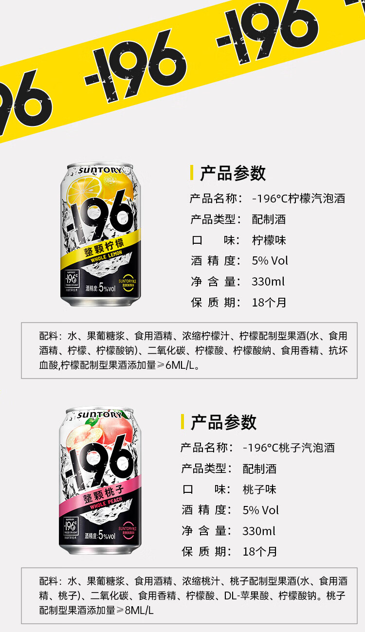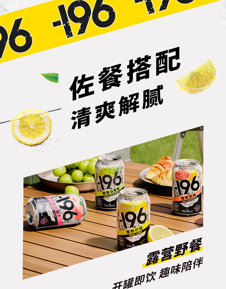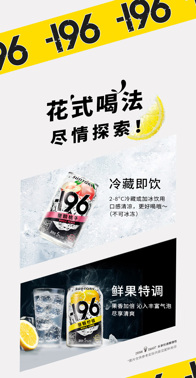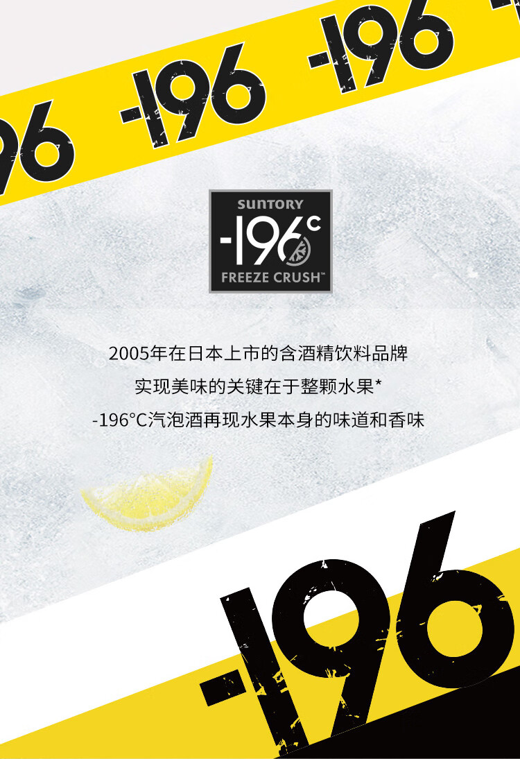 SUNTORY -196 C Suntory Fruit Wine Black Technology Sparkling Wine Cocktail 6 Cans (Lemon + Grape + Peach) Party Ice Drink