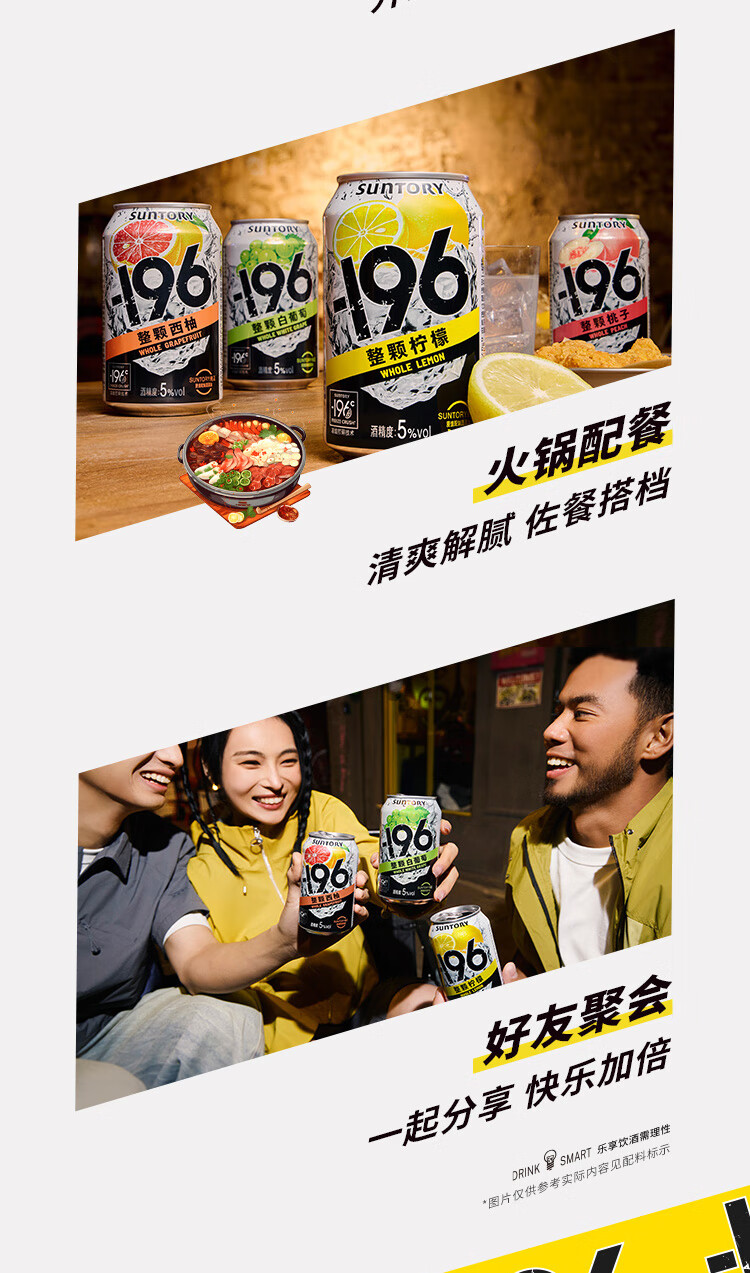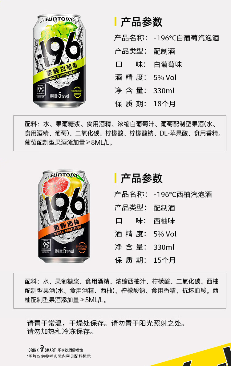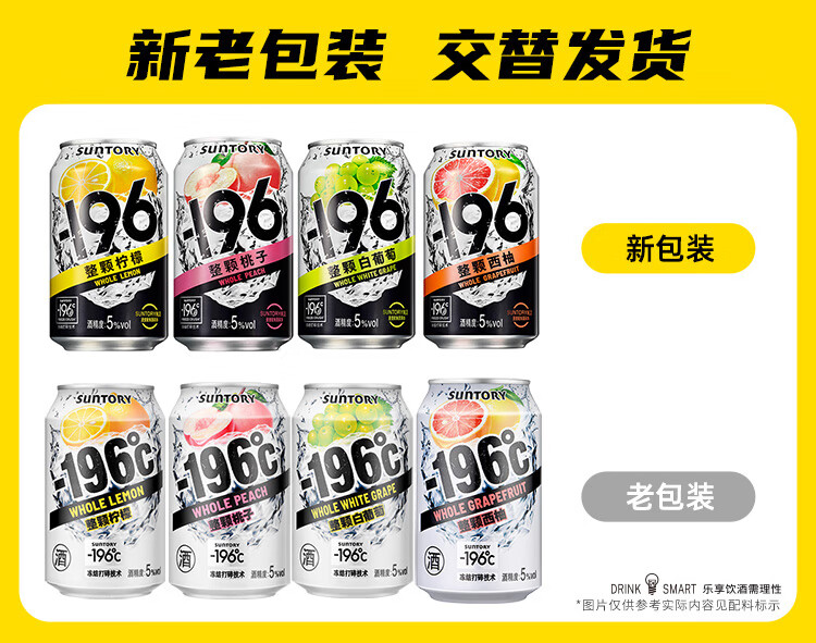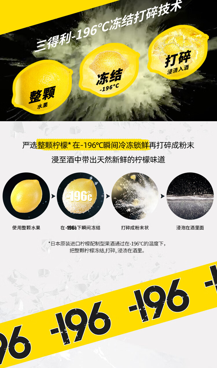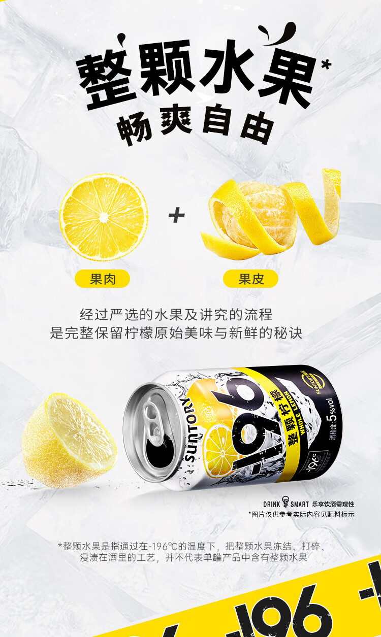 SUNTORY -196 C Suntory Fruit Wine Black Technology Sparkling Wine Cocktail 6 Cans (Lemon + Grape + Peach) Party Ice Drink
