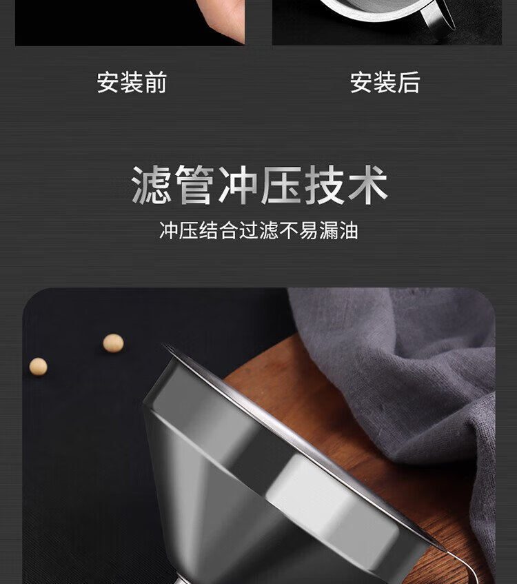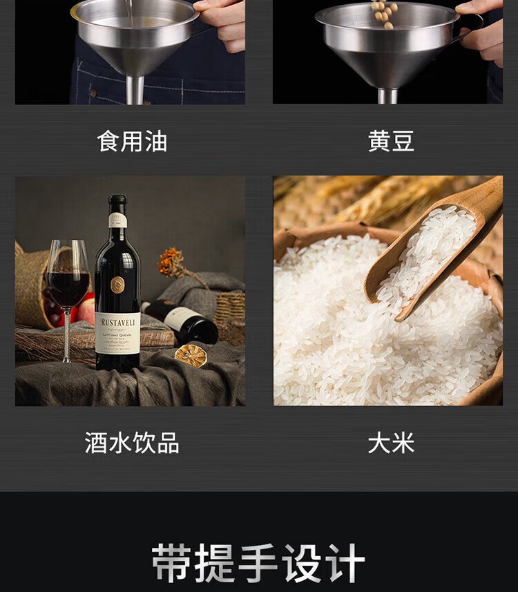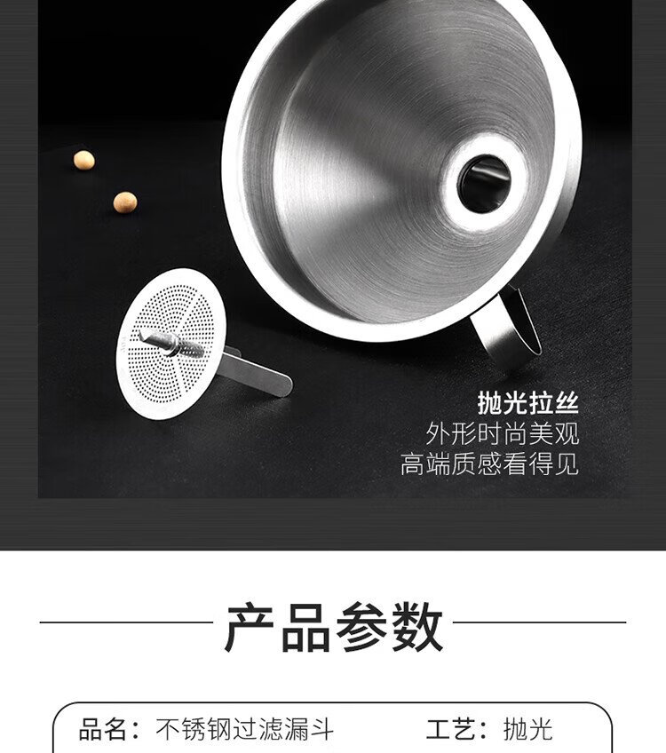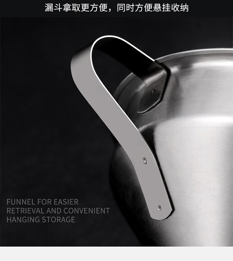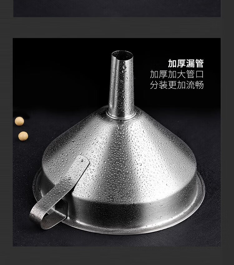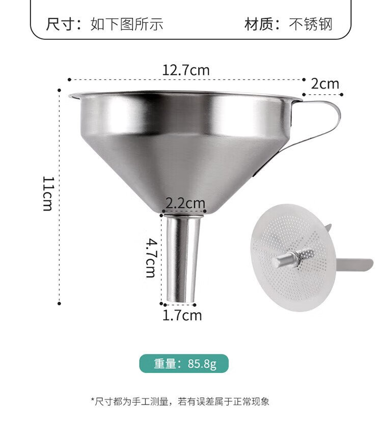 Baijie 304 detachable stainless steel funnel with filter, large diameter oil leak, wine leak, vinegar leak, household kitchen tool