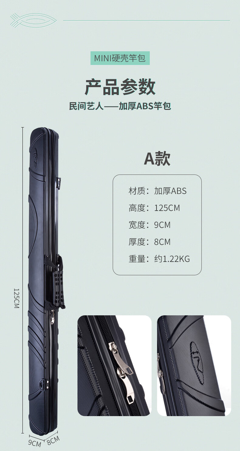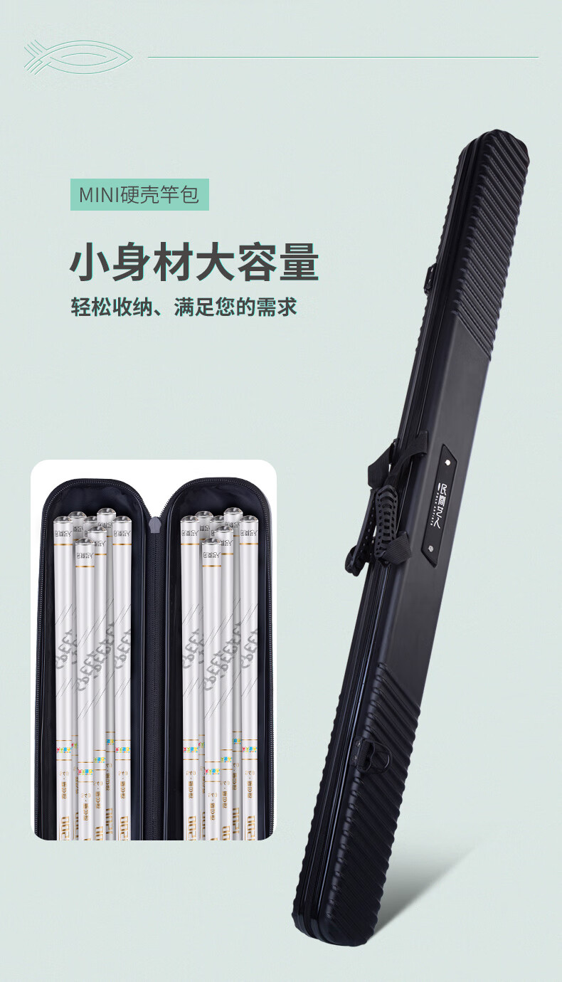 Folk artist hard-shell fishing rod bag, lightweight fishing gear bag, fishing bag, multi-functional mini rod bag, portable fishing gear bag, waterproof