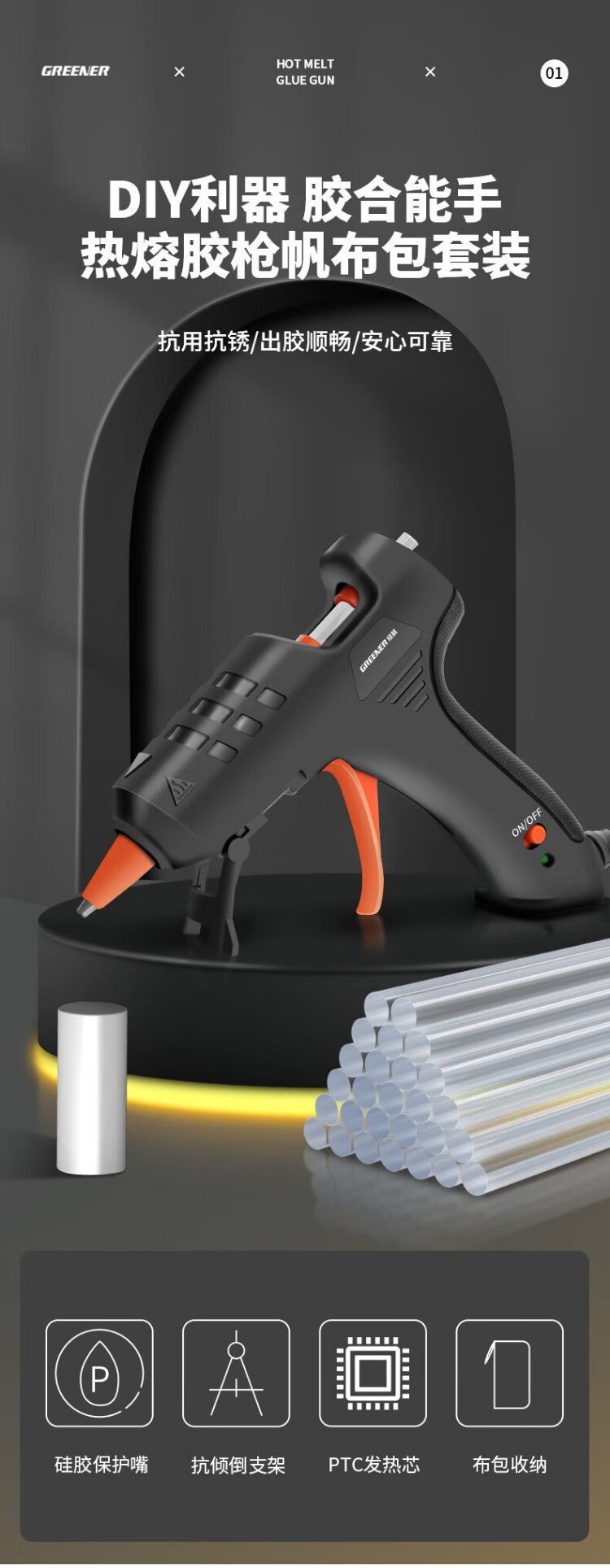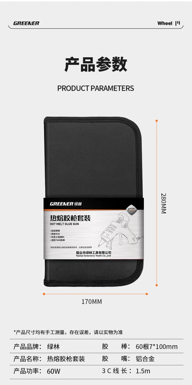 绿林热熔胶枪套装手工DIY家用60W胶枪+60根透明胶棒+收纳包