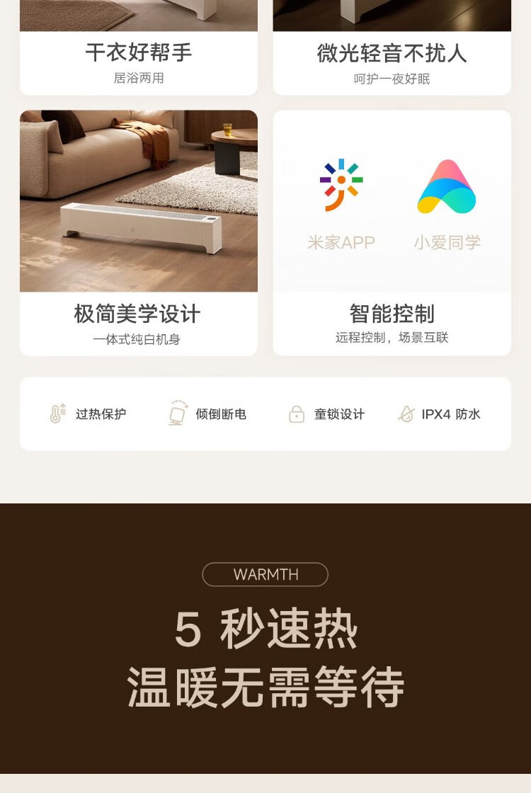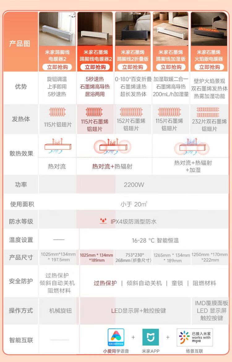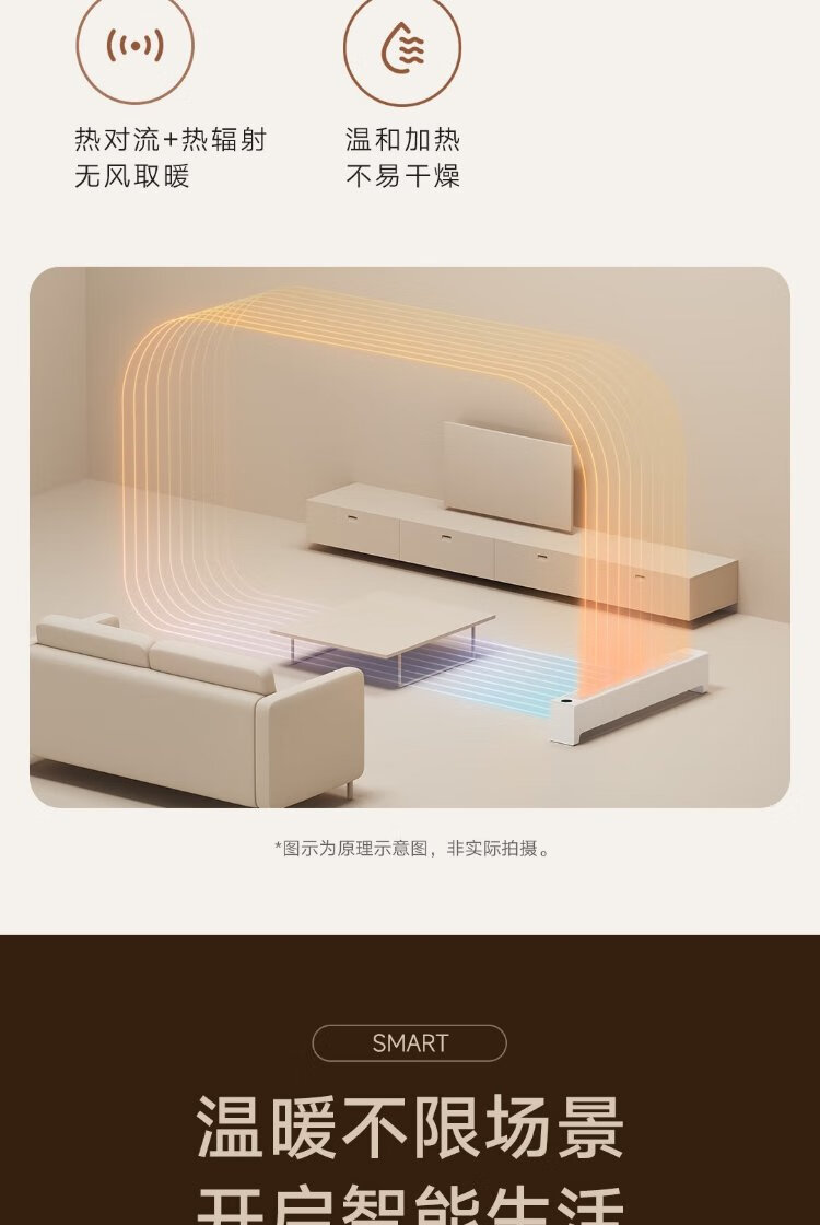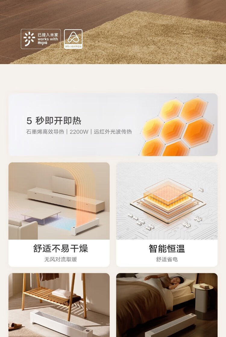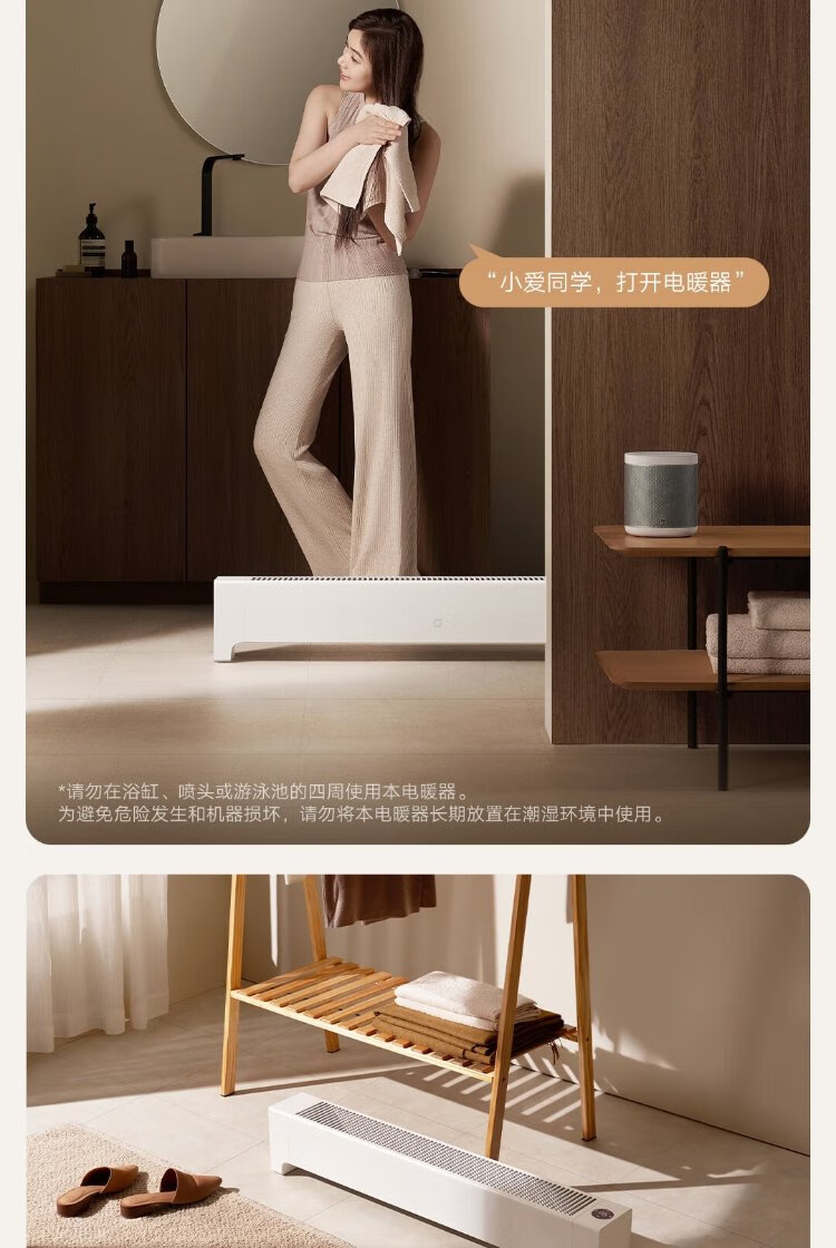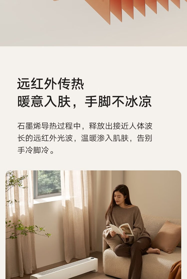 Mijia Xiaomi Heater Graphene Smart Baseboard Electric Heater 2 Intelligent Voice Control 13-level Temperature Adjustment IPX4 Waterproof Heater Electric Heater Home