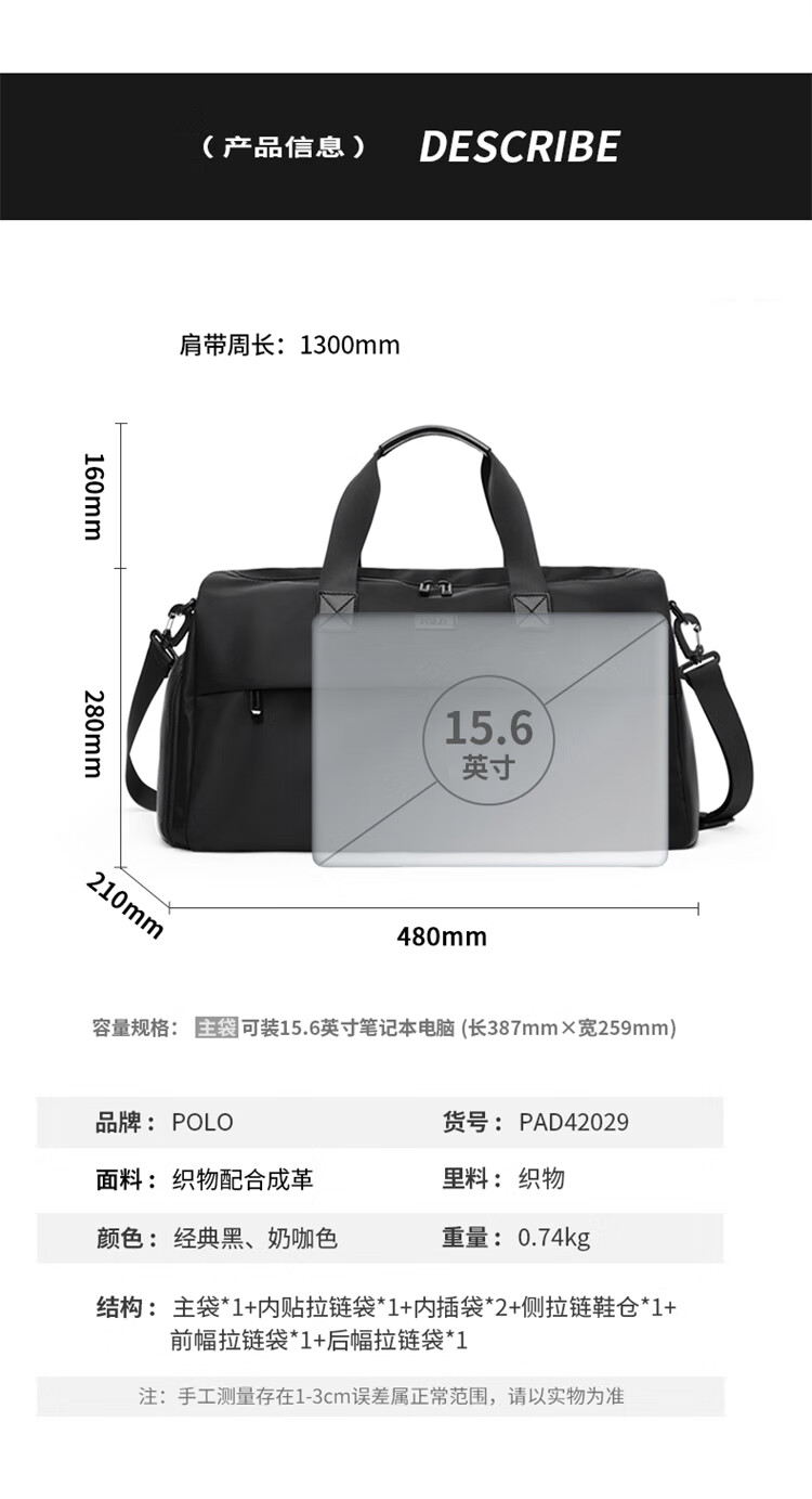 POLO travel bag men's handbag men's luggage bag fitness bag large capacity business trip sports luggage bag messenger bag