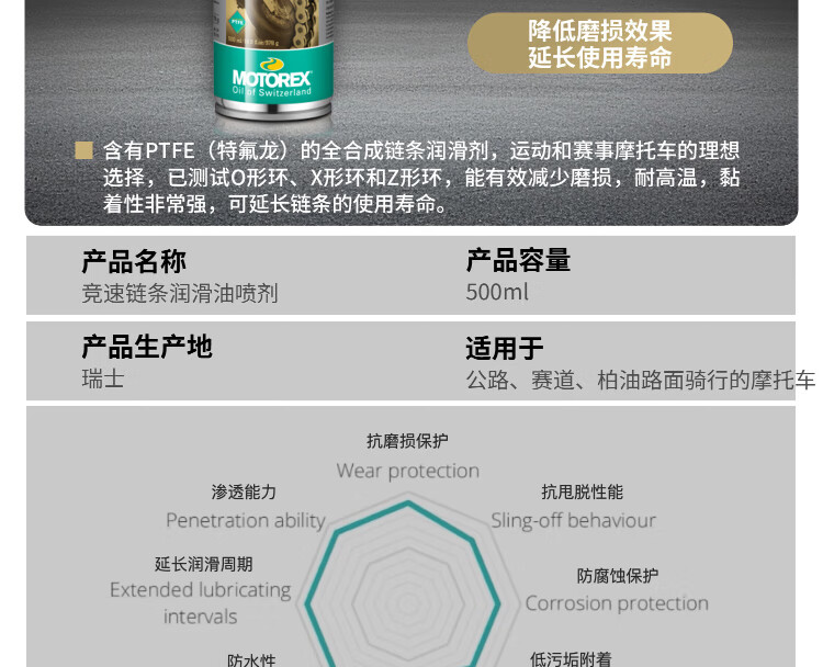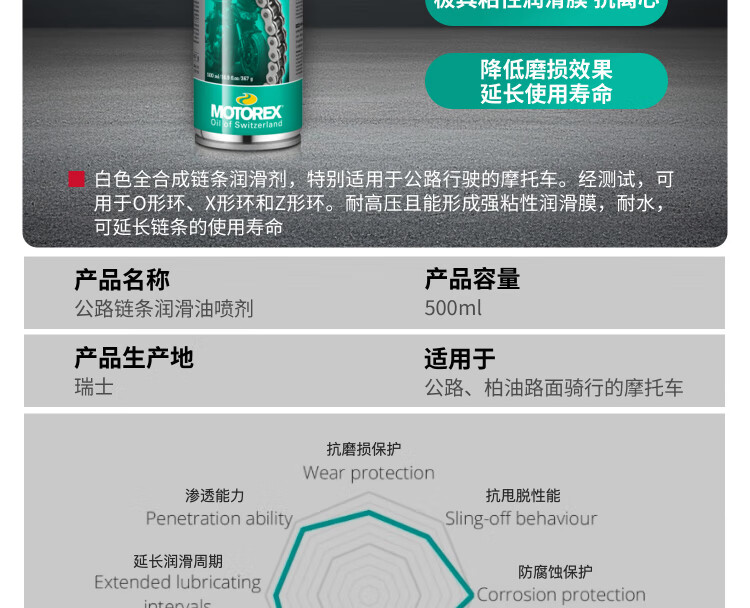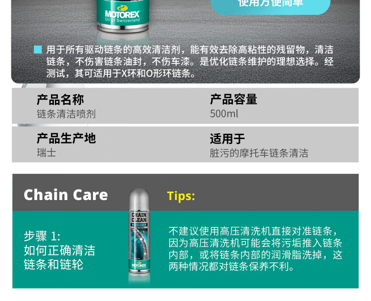 MOTOREX Swiss professional high-performance motorcycle chain cleaner chain cleaner maintenance 500ML