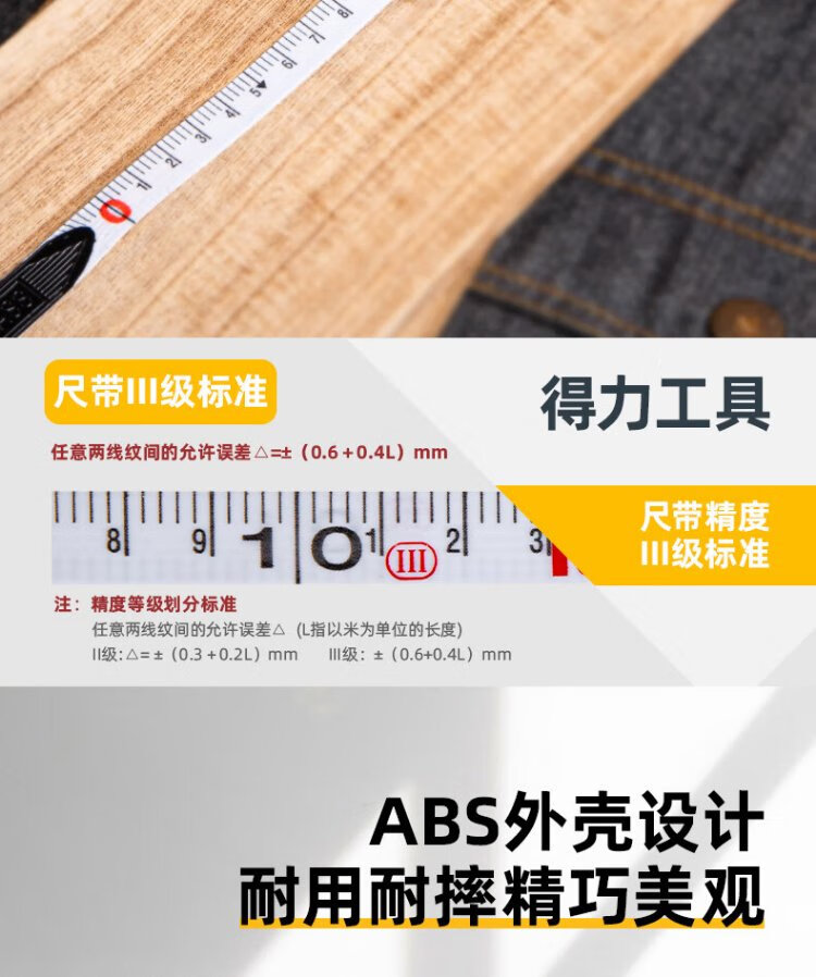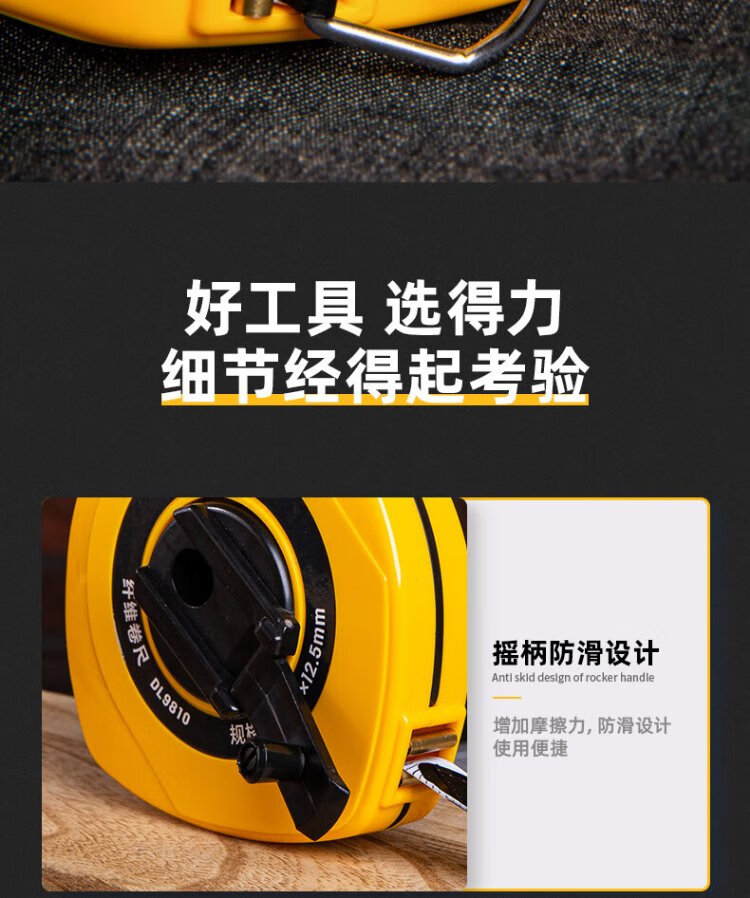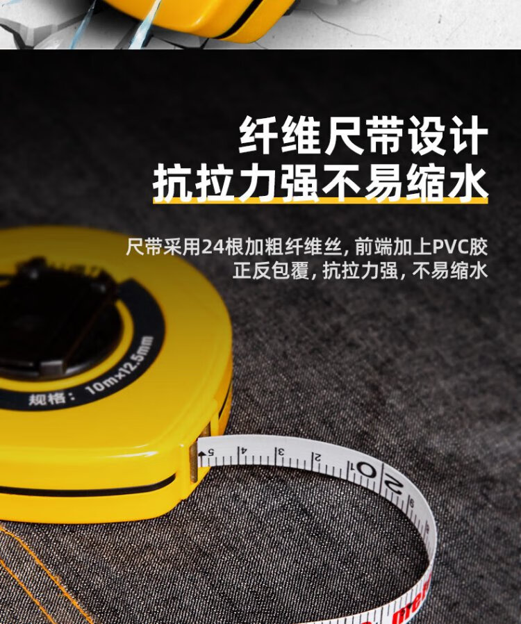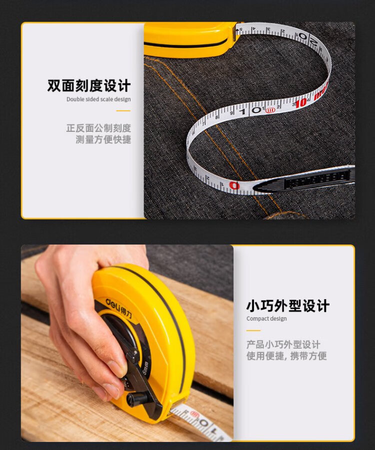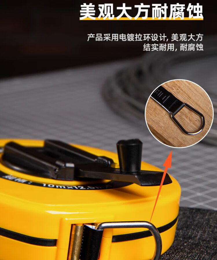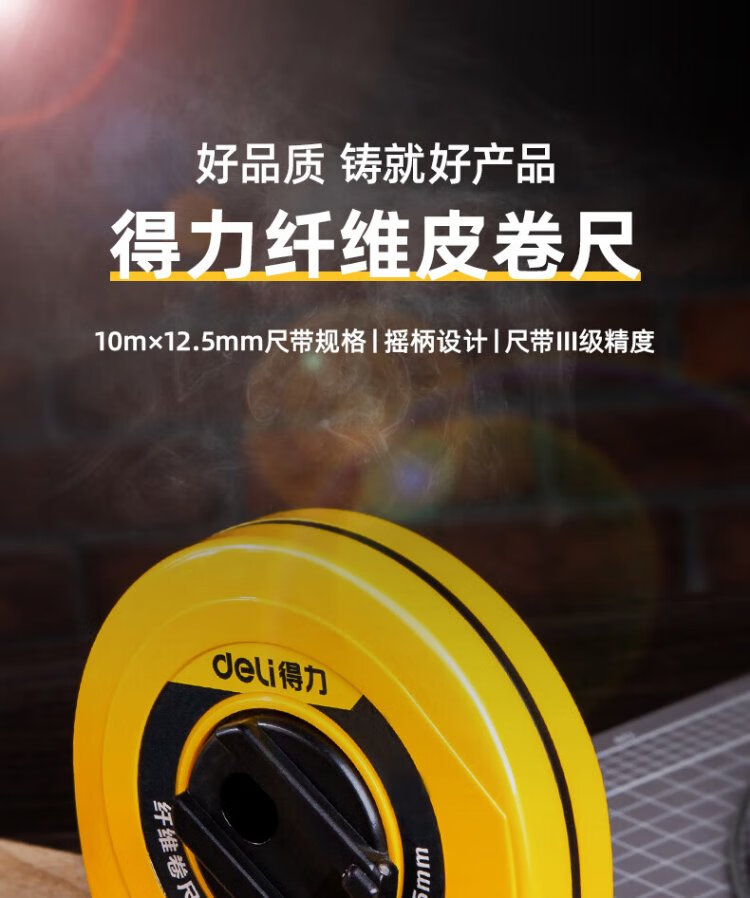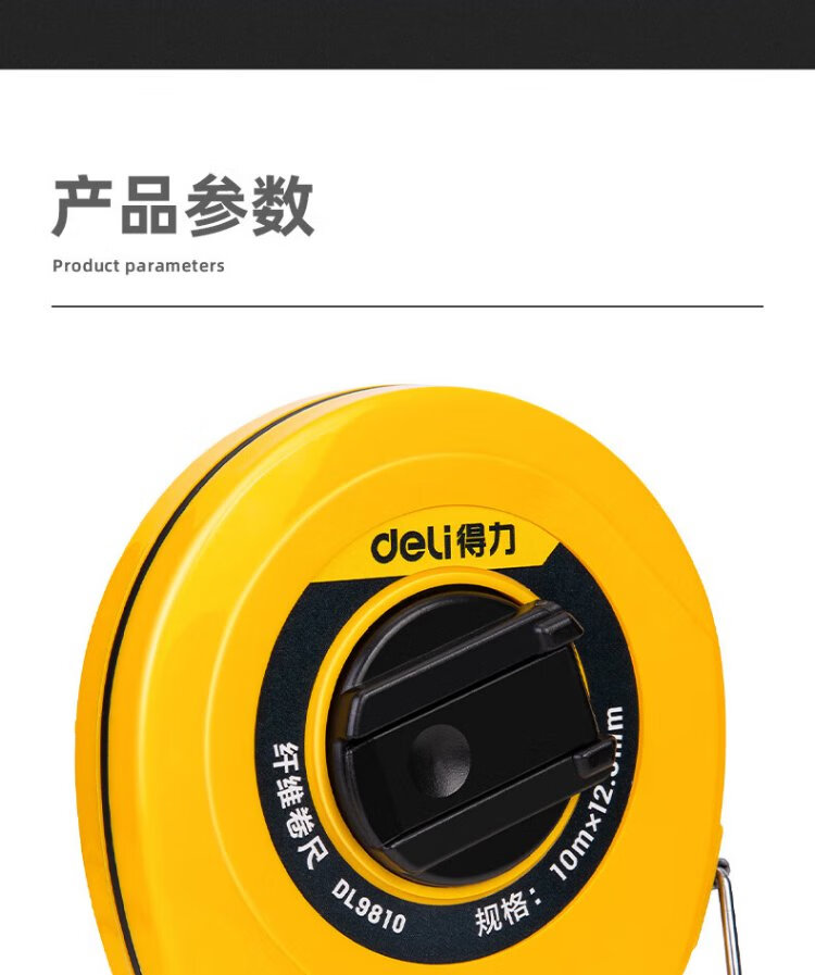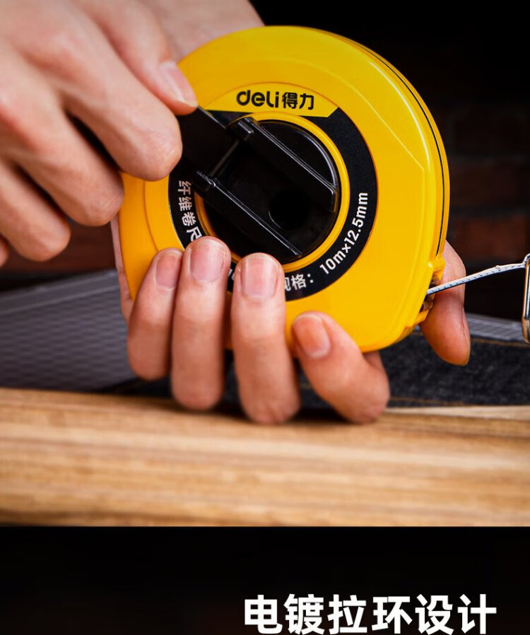 Deli 10m fiber ruler box type playground disc type leather tape measure engineering measurement 10m