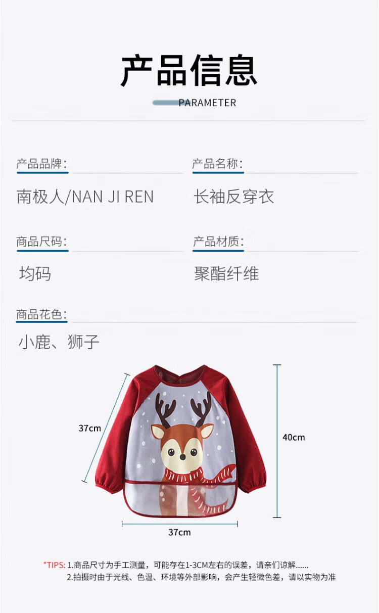 Nanjiren children's smock, baby eating bib, baby bib, splash-proof clothing, waterproof painting, reverse dressing apron, saliva pocket