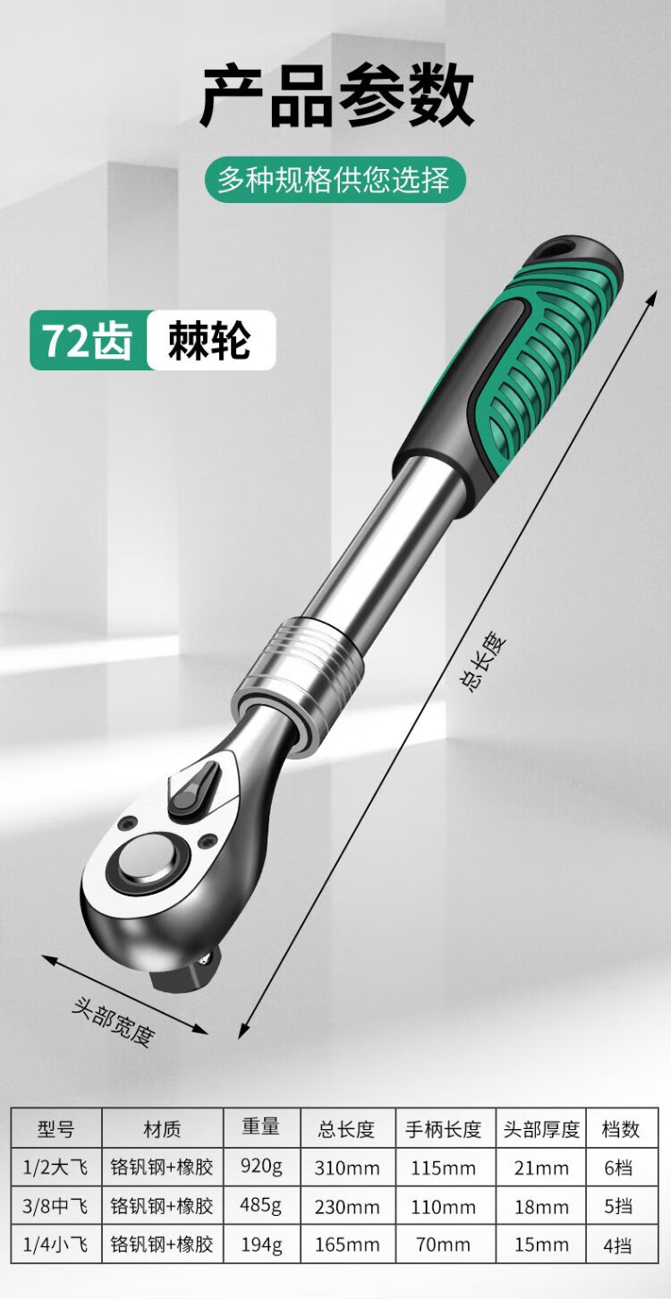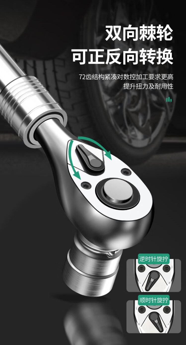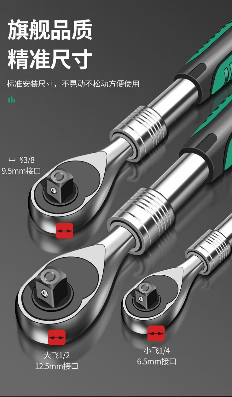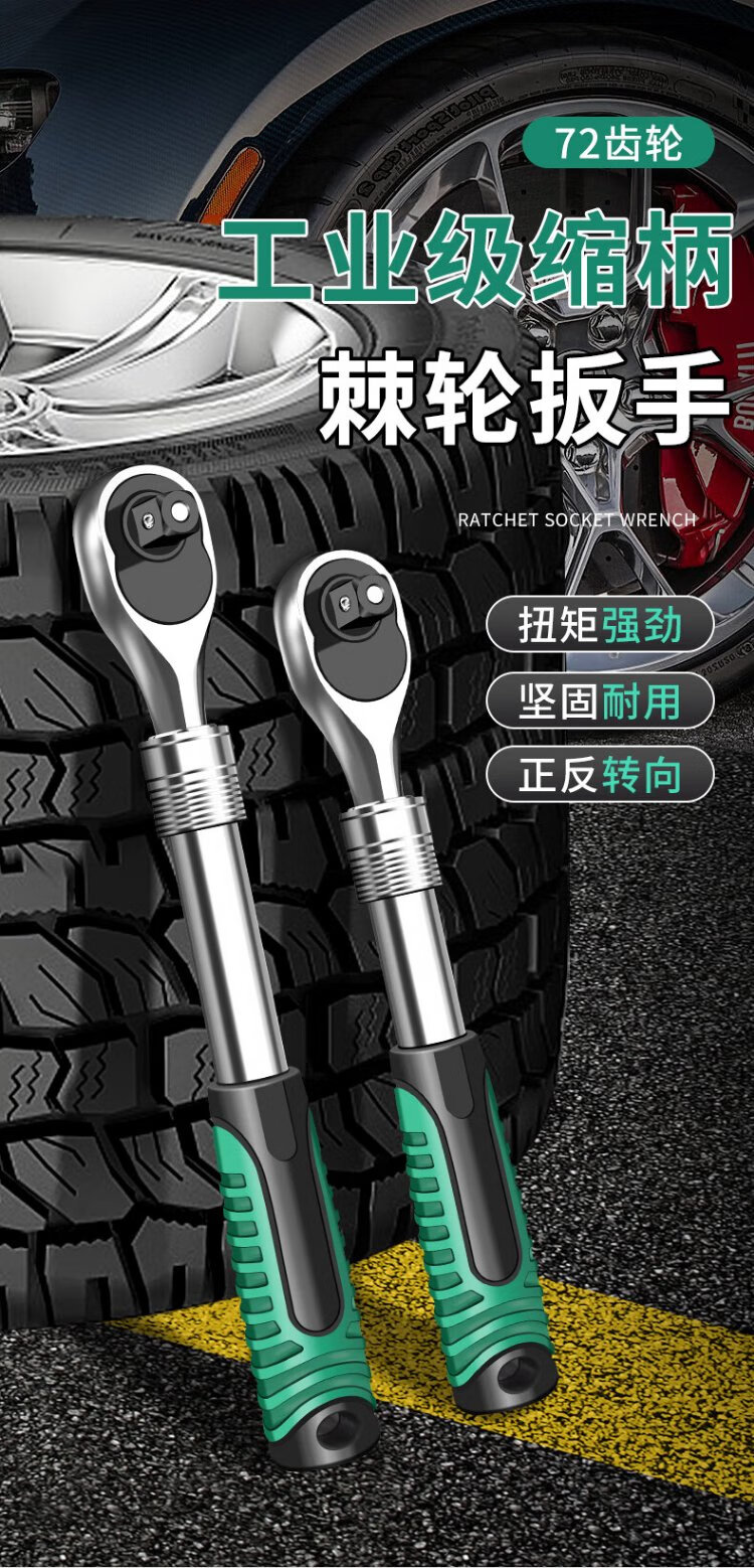 Baolian Dafei Zhongfei Xiaofei ratchet telescopic wrench auto repair tool two-way sleeve fast 72 gear pearl nickel
