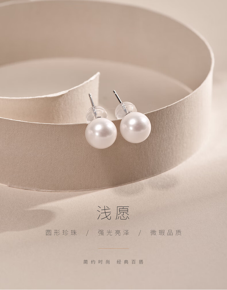 Jingrun Pearl Earrings Light Wish 18K Gold Freshwater Pearl Earrings Young Earrings Practical as a Birthday Gift for Mom