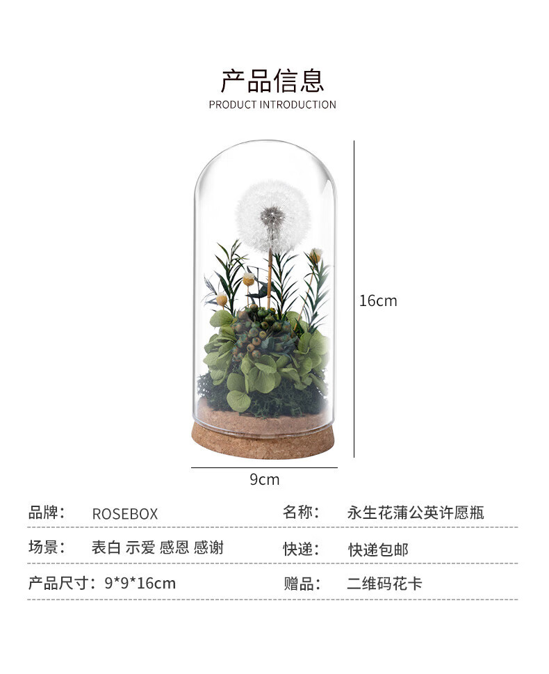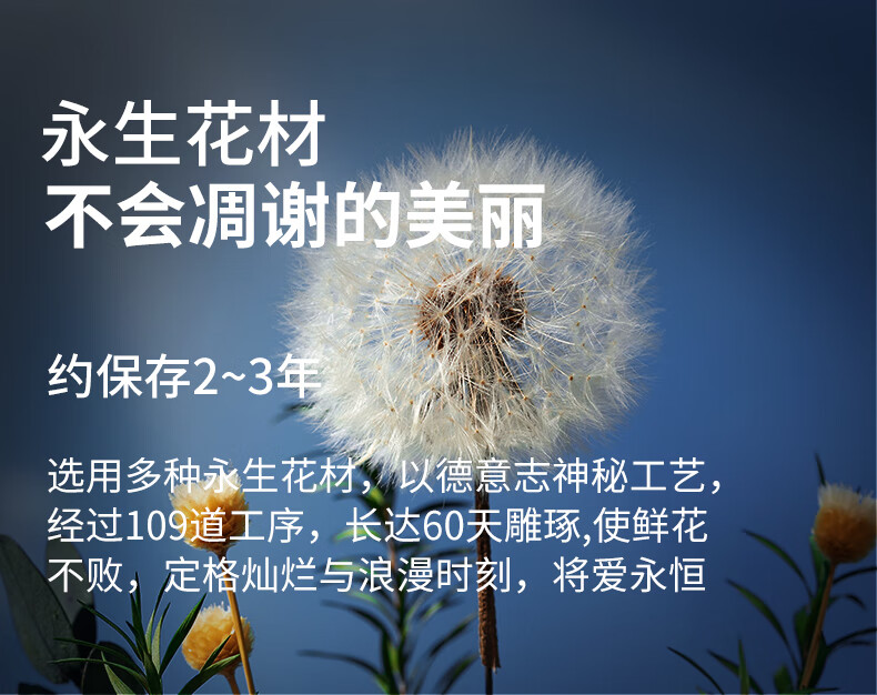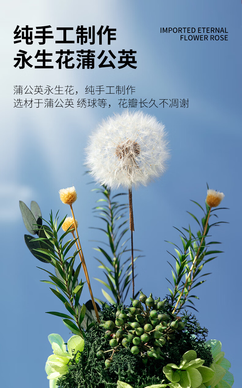 RoseBox dandelion eternal flower birthday gift anniversary gift for female friends, senior besties, niche senior wedding anniversary