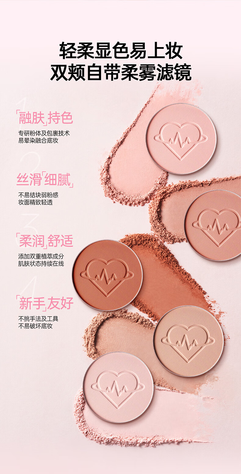 Ji Rui (ZA) Heart Sticking Blush 4.1g Brightens Skin Nude Makeup Naturally Contours Versatile Vitality 03 Sweet Peach Powder