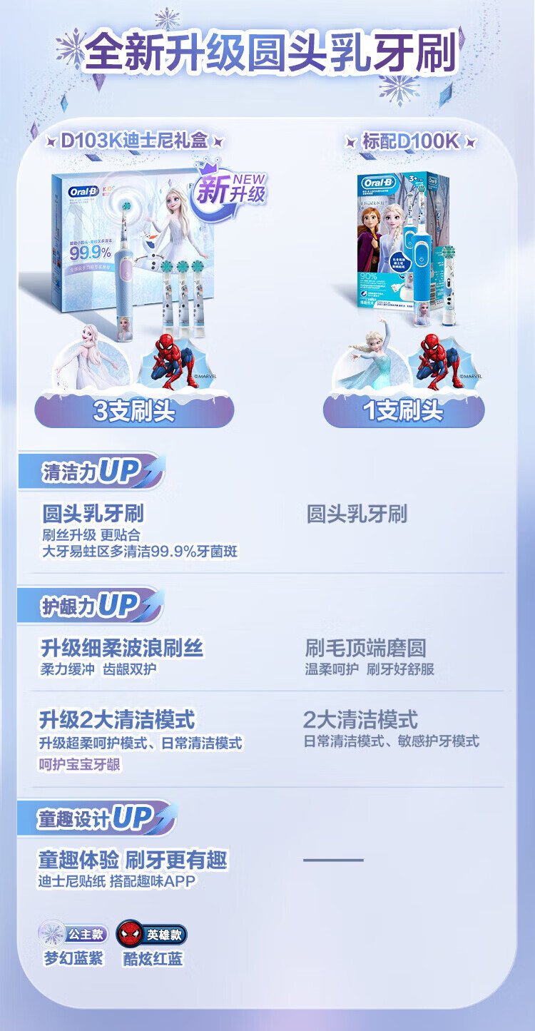 Oral-B electric toothbrush for children aged 3-7 years old toothbrush D103K Frozen Gift Box brush heads * 3 (random brush head pattern) OCC daily cleaning tooth care