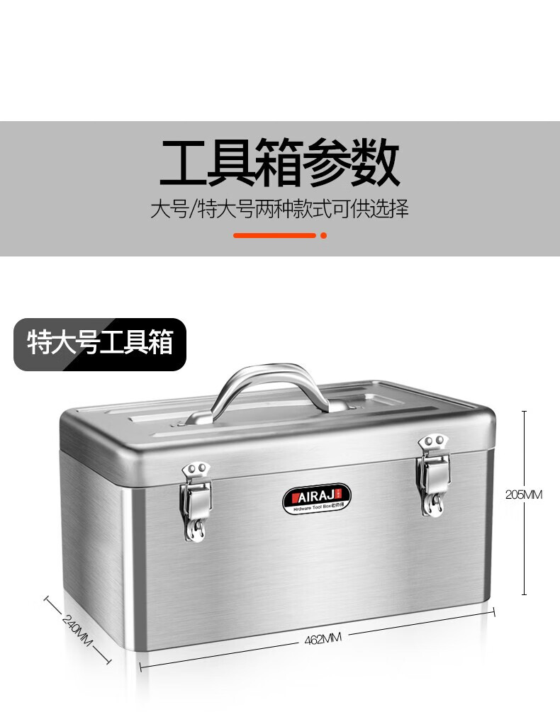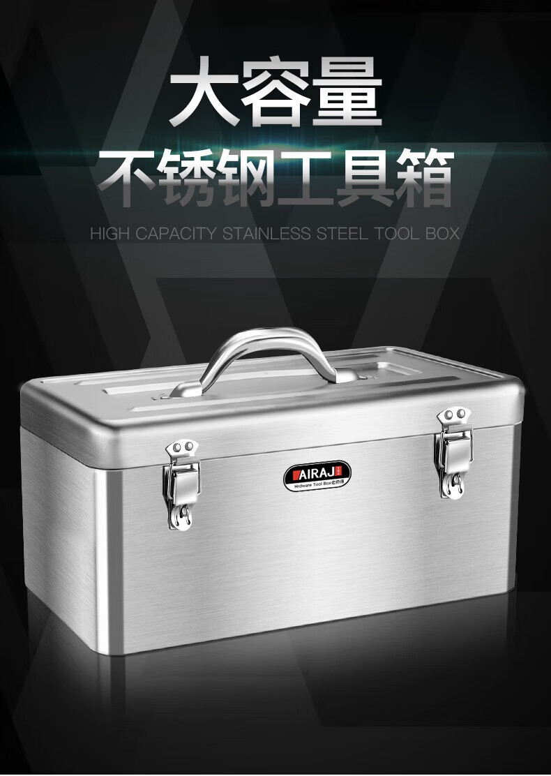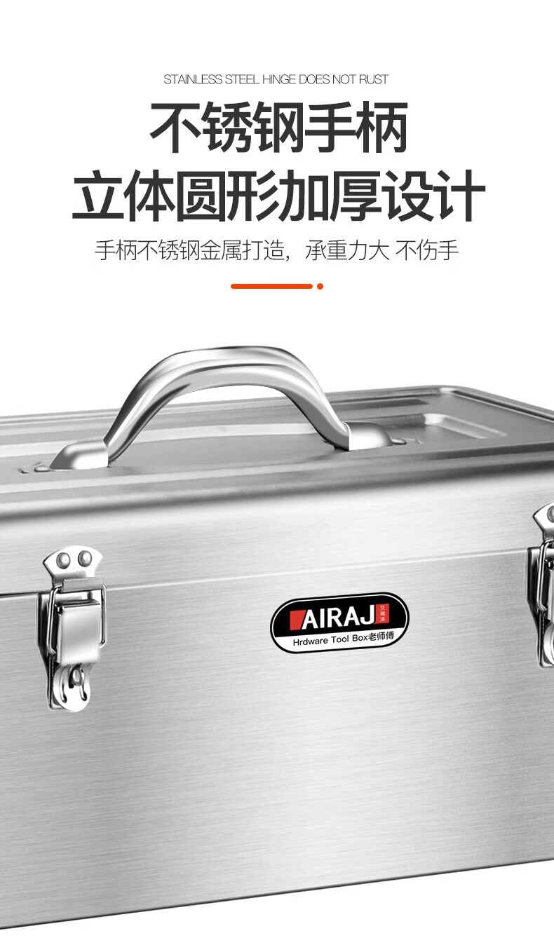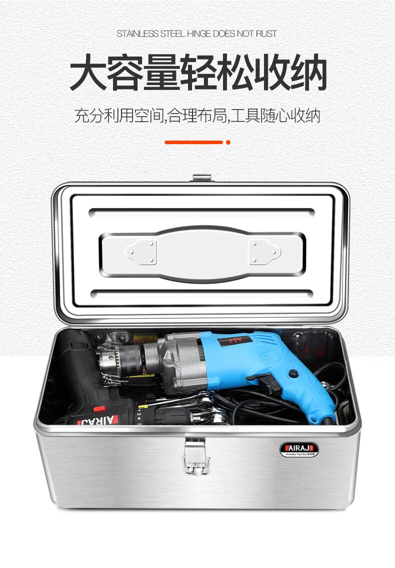 Arrizo stainless steel tool box storage box electrician household storage box car portable metal tool box large size