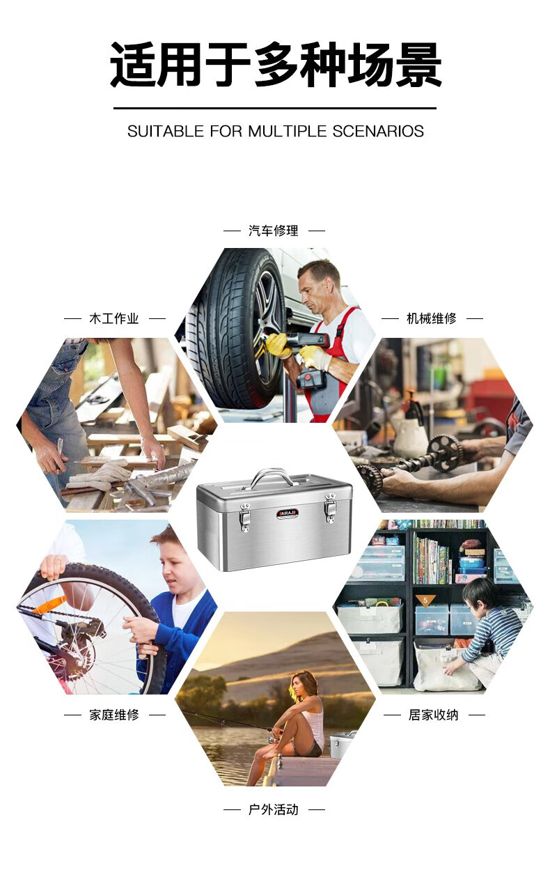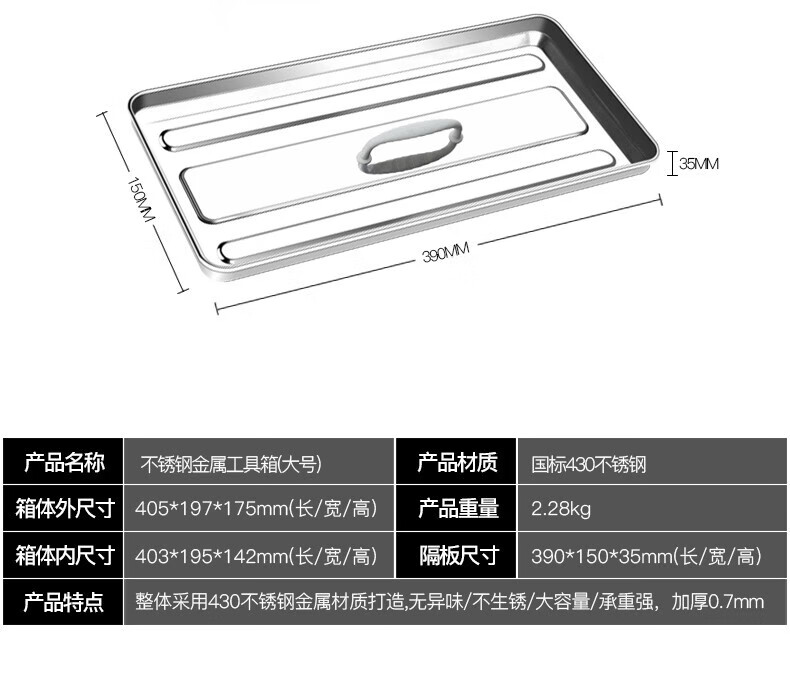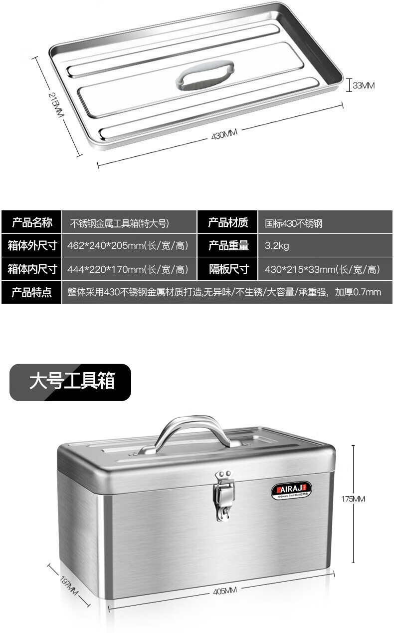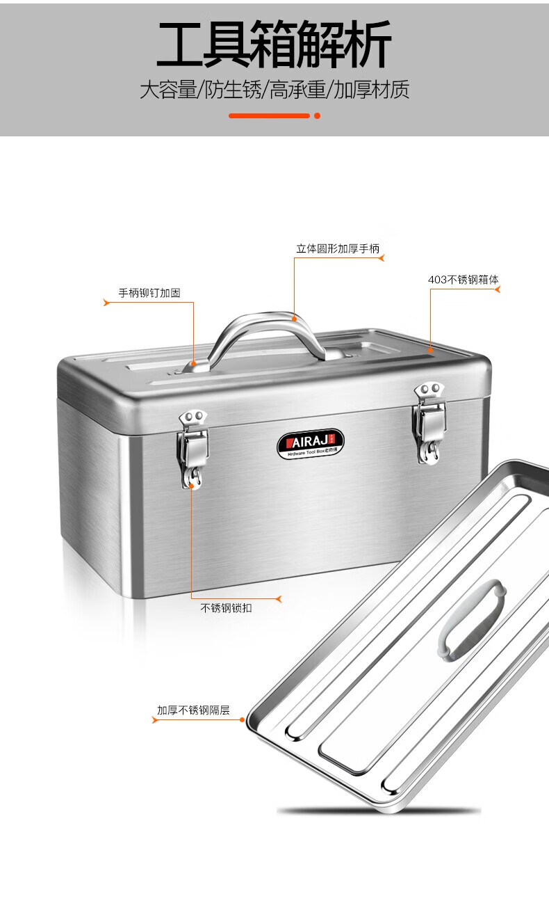 Arrizo stainless steel tool box storage box electrician household storage box car portable metal tool box large size