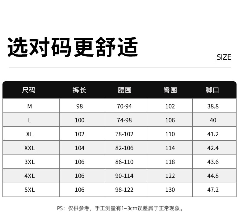 Outseam (cm) 99 cm 101.5 cm 104 cm 106.5 cm 109 cm