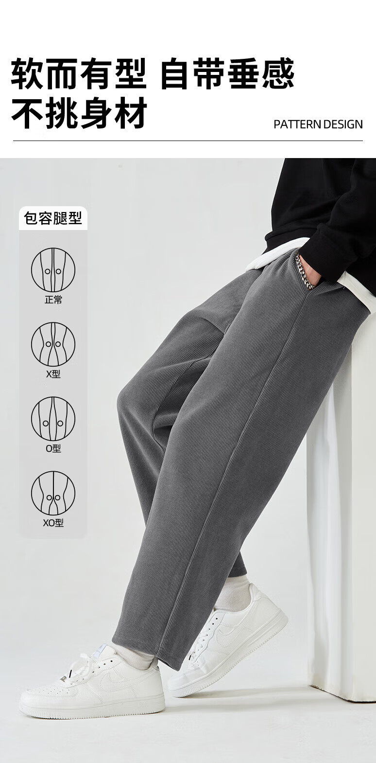 Baleno casual pants men's autumn chenille heavy straight men's trousers trendy street slim and drape youth pants