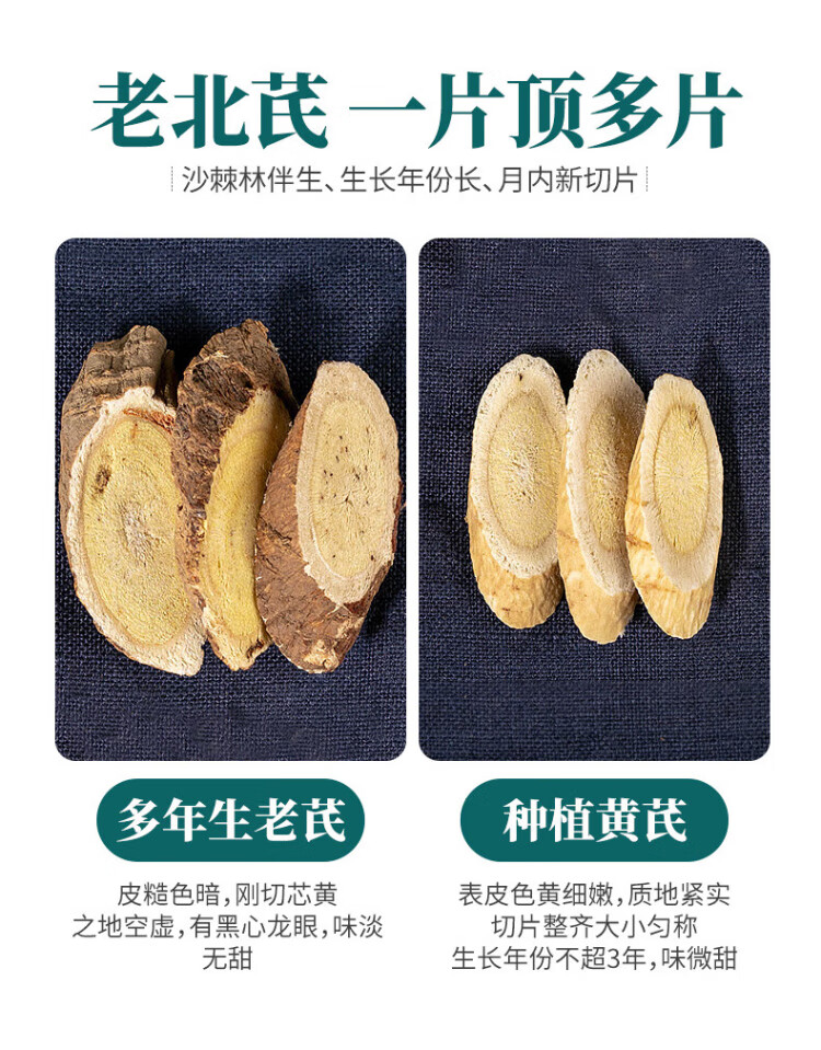 Juhetai 15mm blockbuster Minxian 10-year-old wild astragalus tablets 500g raw astragalus, Zhihuang's old astragalus Chinese medicinal material