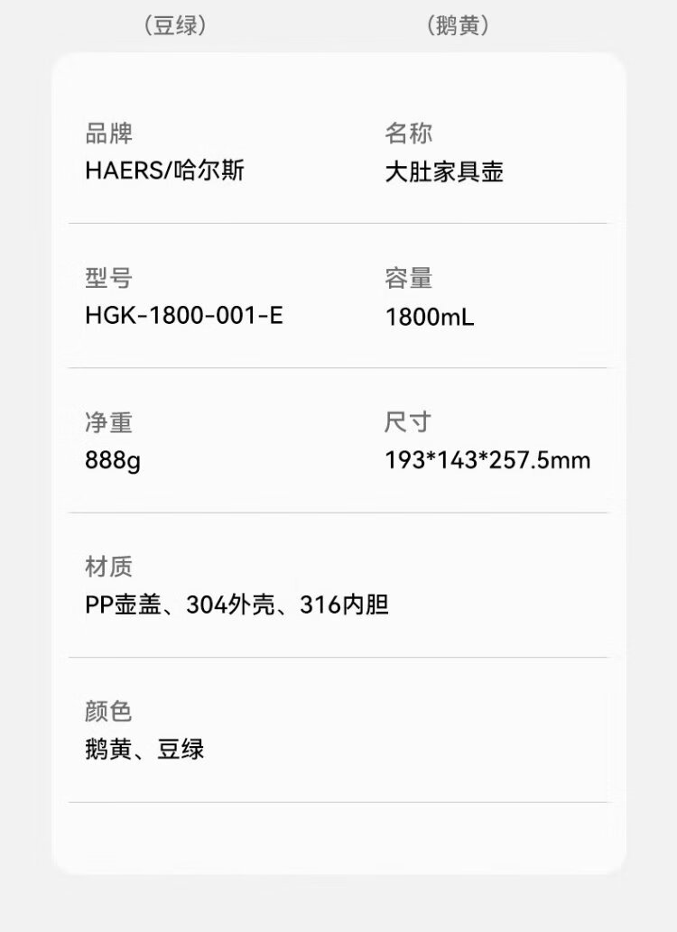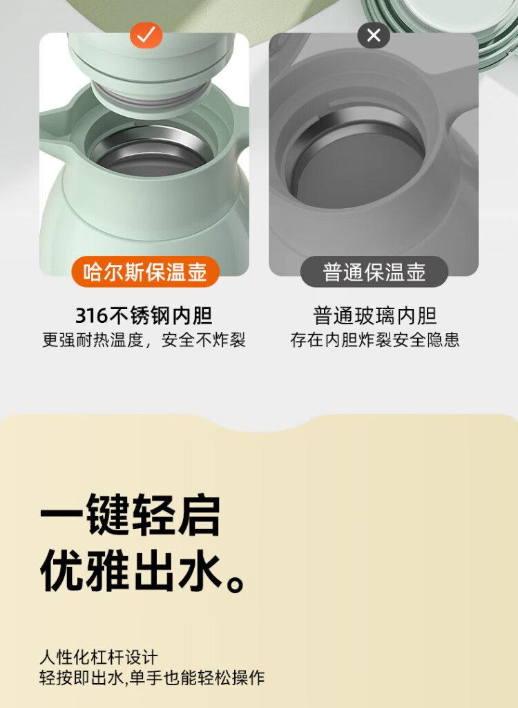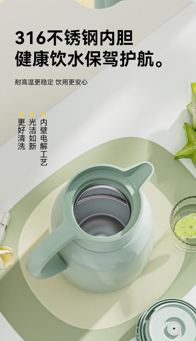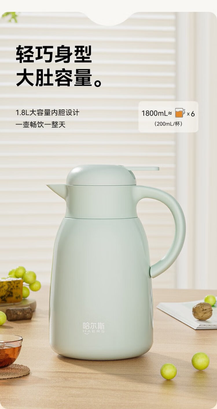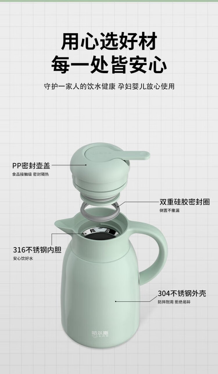 Hals thermos kettle household large capacity bottle thermos kettle 316 stainless steel big belly household kettle bean green 1800ml