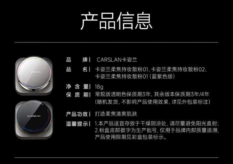 Carslan Black Magnetic Loose Powder Setting Powder Oil Controlling Concealer Long-lasting Anti-sweat Large Capacity (Blue Purple) 18g Birthday Gift