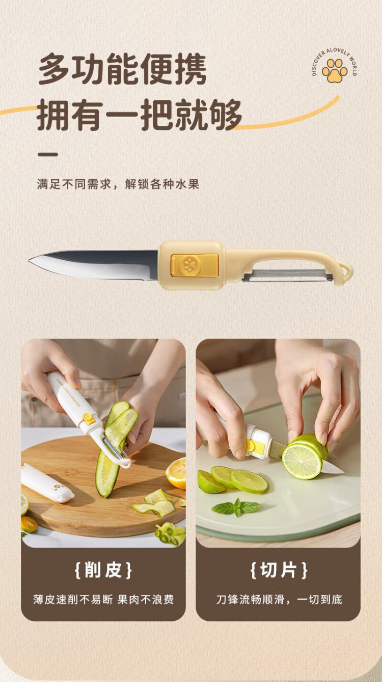 Baijie fruit knife peeling knife two-in-one double-headed fruit knife office student dormitory safety household peeler