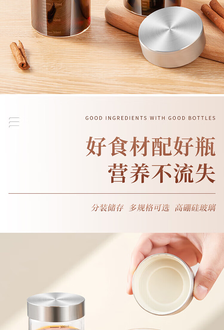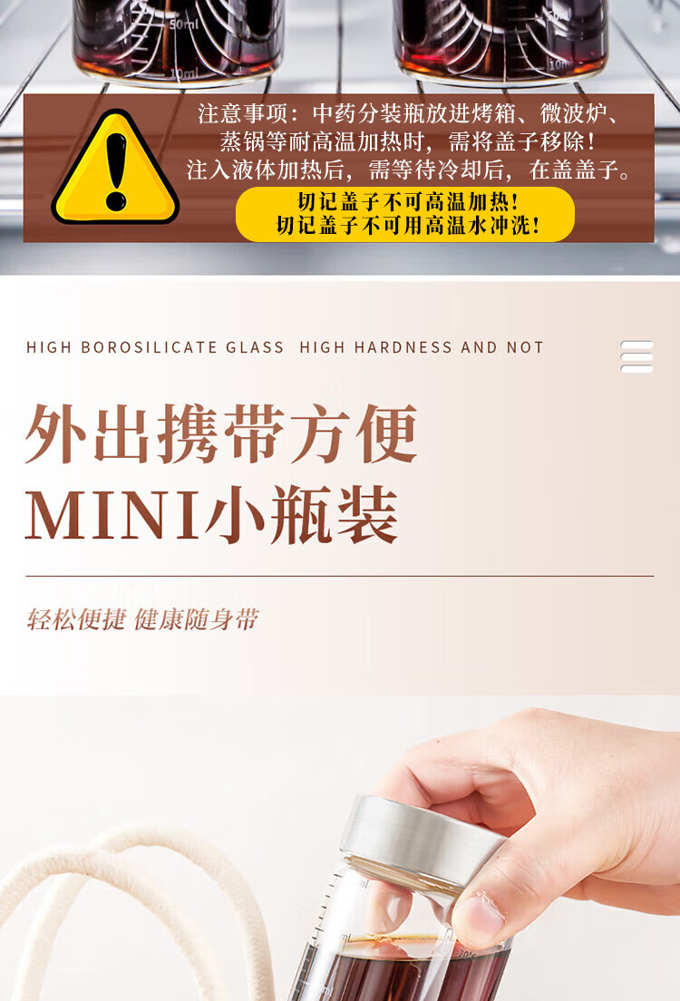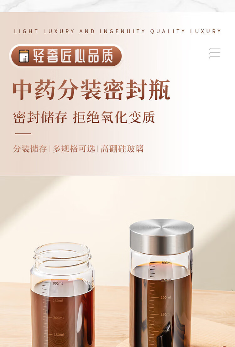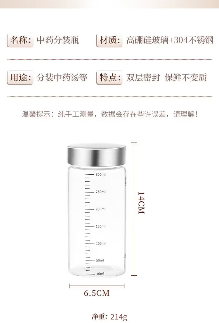 Baijie glass Chinese medicine sub-bottling food-grade high temperature resistant sealed glass jar portable Chinese medicine storage container sealed jar storage bottle