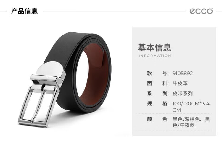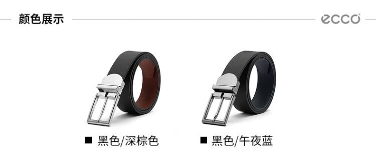 ECCO business casual belt metal pin buckle belt for men 9105892 black/midnight blue 120cm gift box