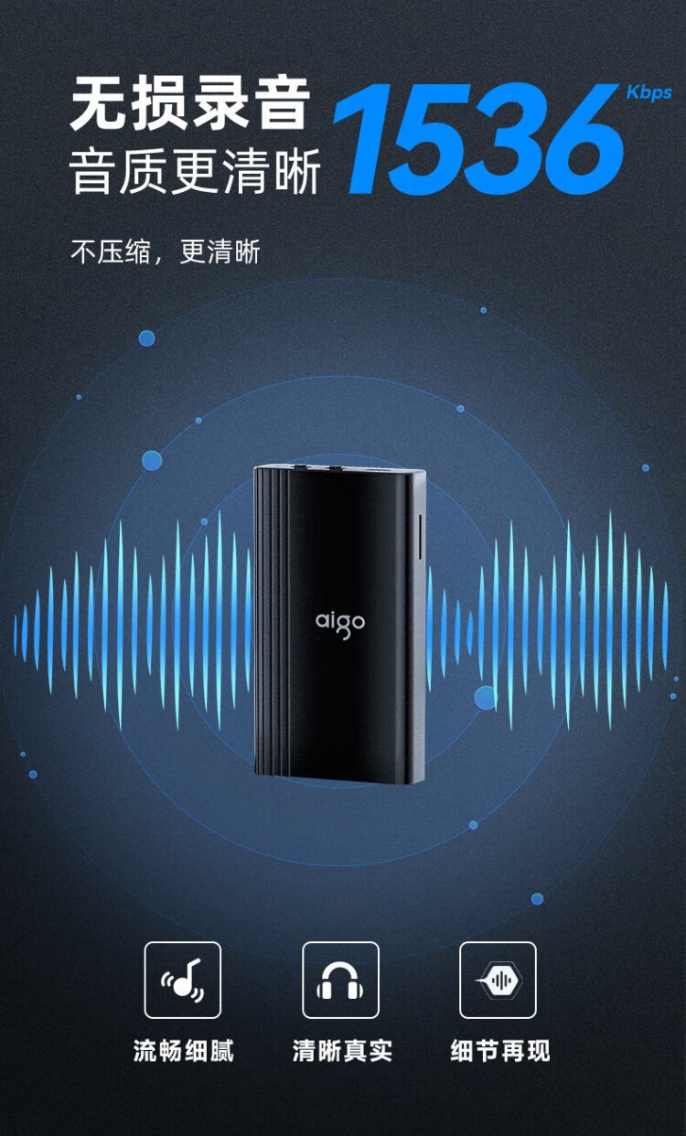 Patriot (aigo) 32G recorder R9977, 300 hours of continuous recording, ultra-long standby, professional recording, smart high-definition noise reduction recorder device, portable, compact, study conference interview