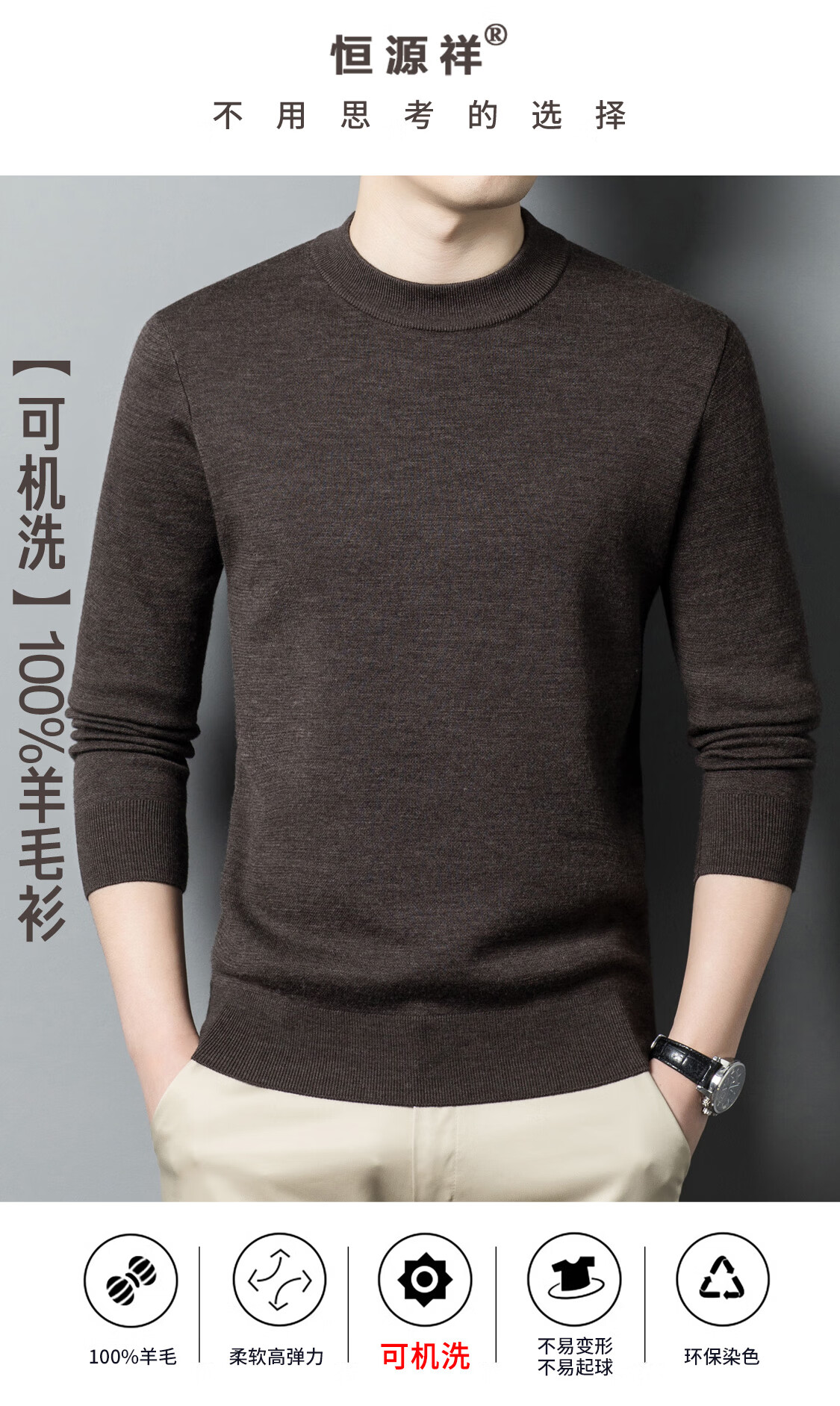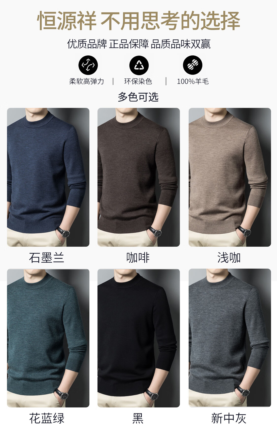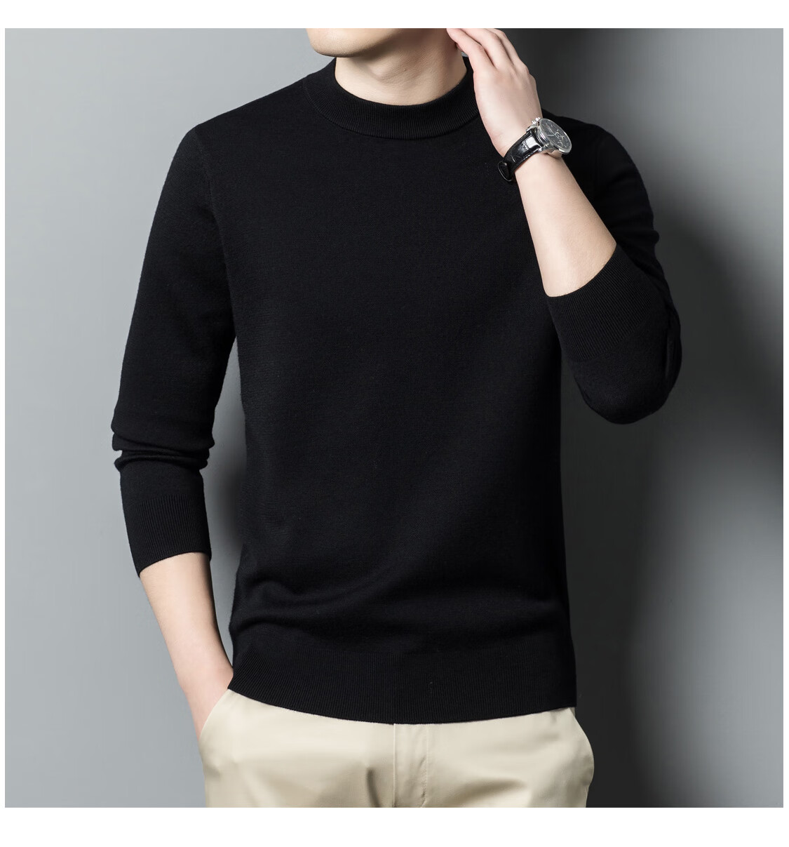 Hengyuanxiang machine washable wool sweater men's autumn and winter thickened round neck worsted sweater black 175