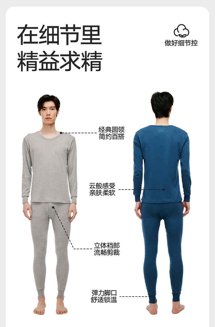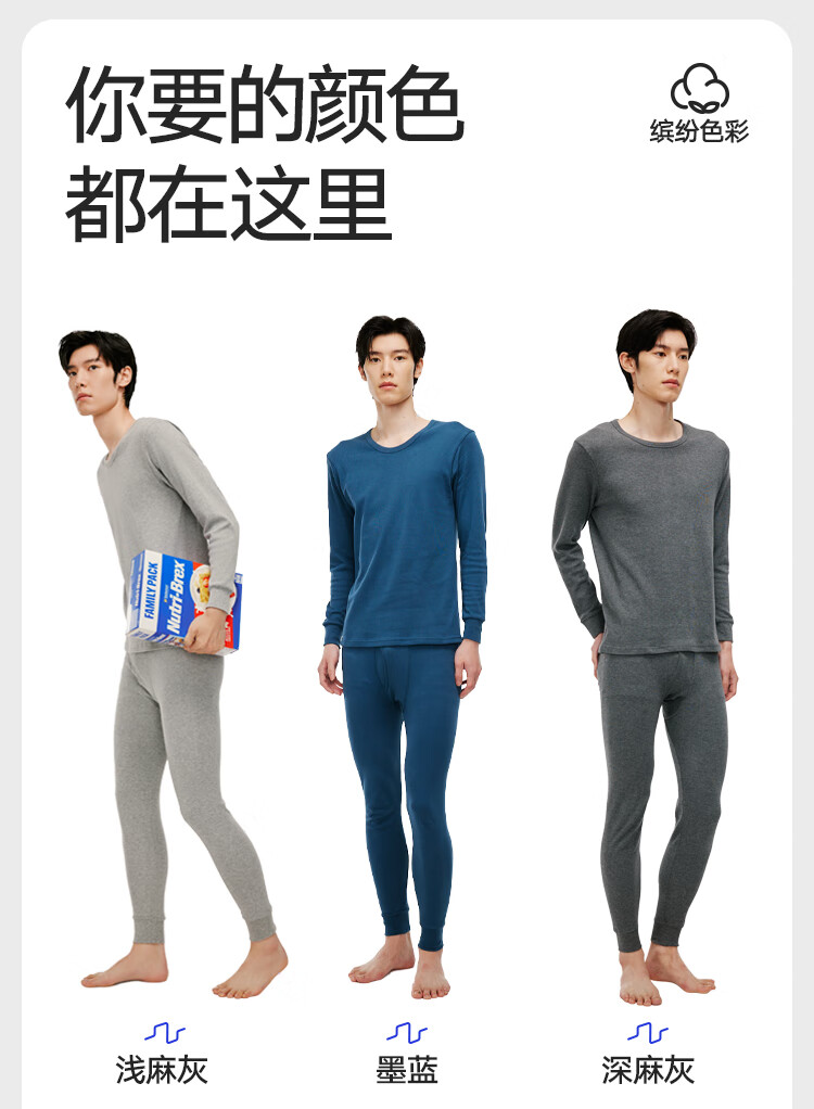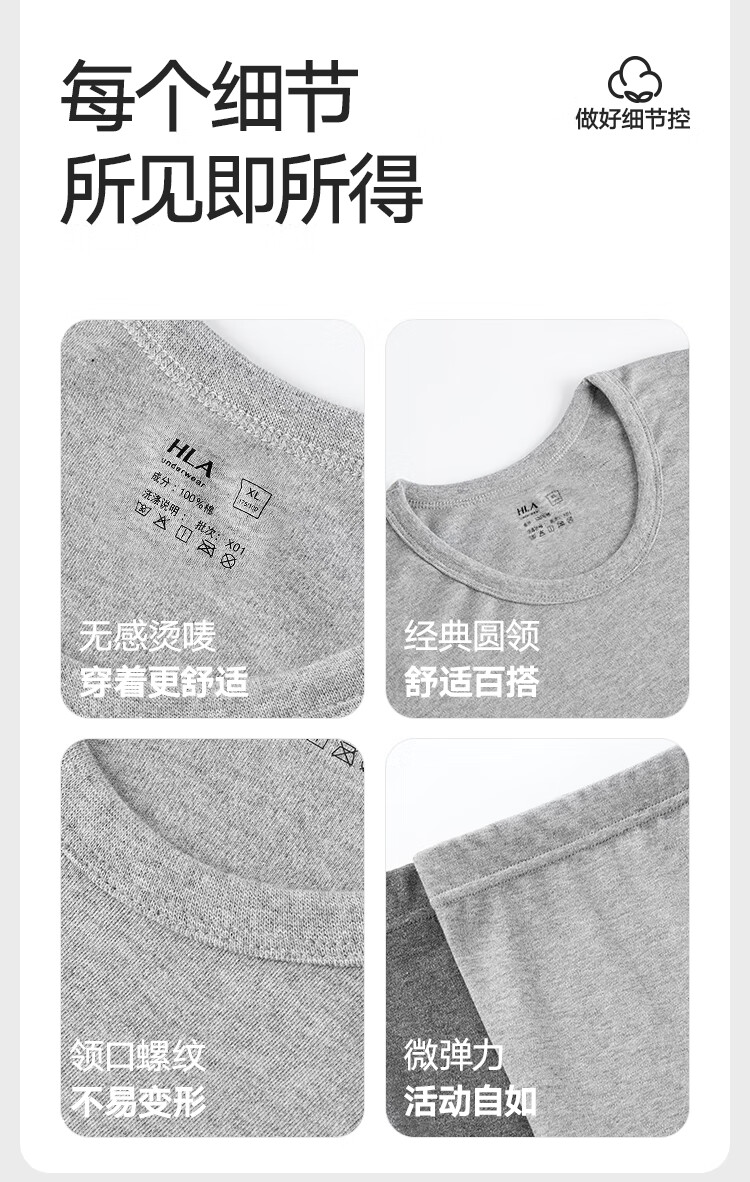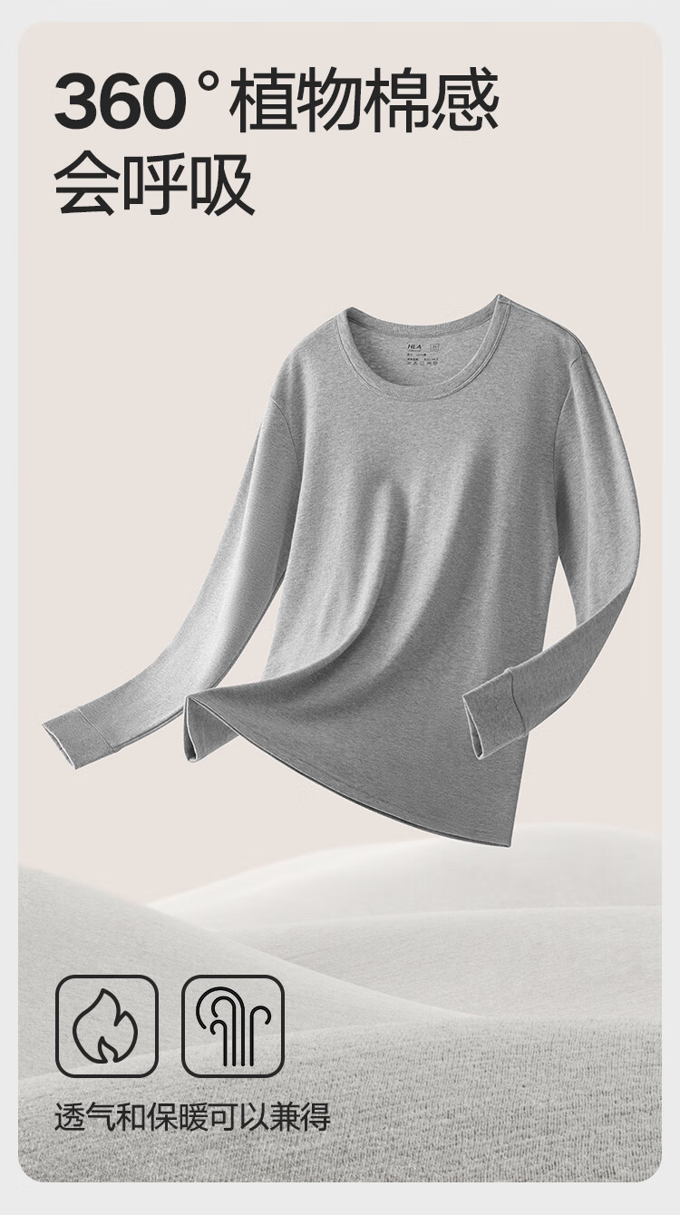 Heilan House Men's Autumn Clothes and Autumn Pants Men's Round Neck Pure Cotton 100% Cotton 230g Basic Bottoming Cotton Sweater Thin Thermal Underwear Set