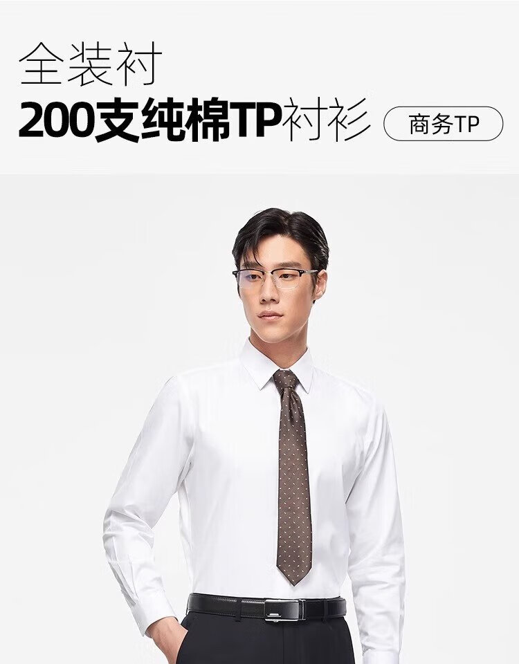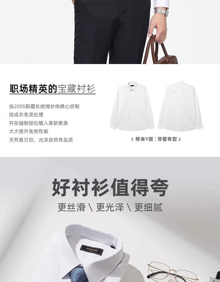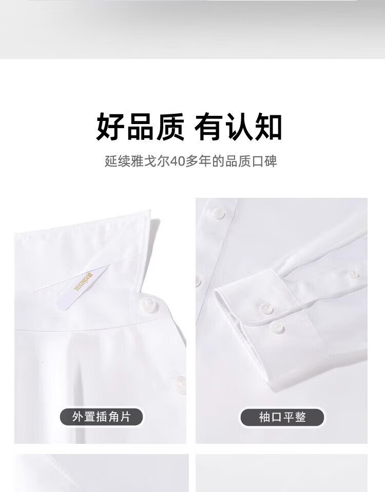 Youngor 200 Count TNDP no-iron autumn new high-end cotton long-sleeved shirt for men in white 41
