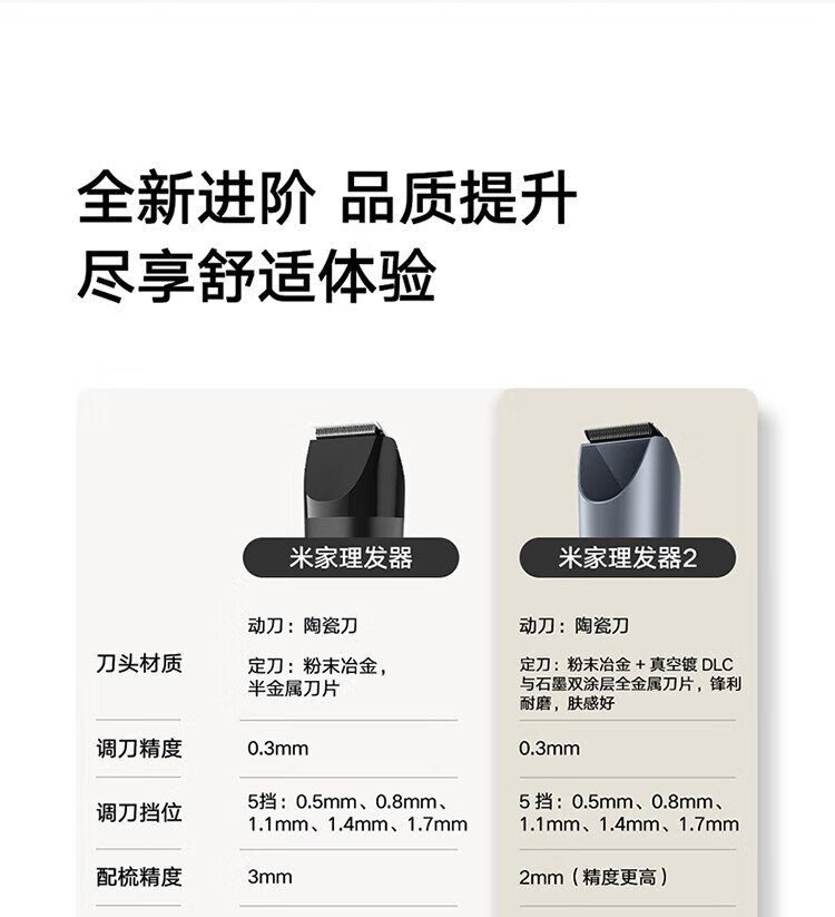 Mijia Hair Clipper 2 Xiaomi Hair Cutter Shaver Hair Clipper Upgraded Full Metal Fixed Knife Double Coated Obsidian Black High Hardness Blade Heads Refreshing and Sharp for Home Barbering
