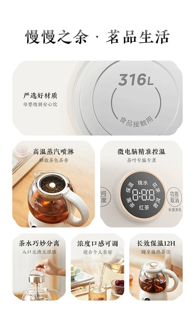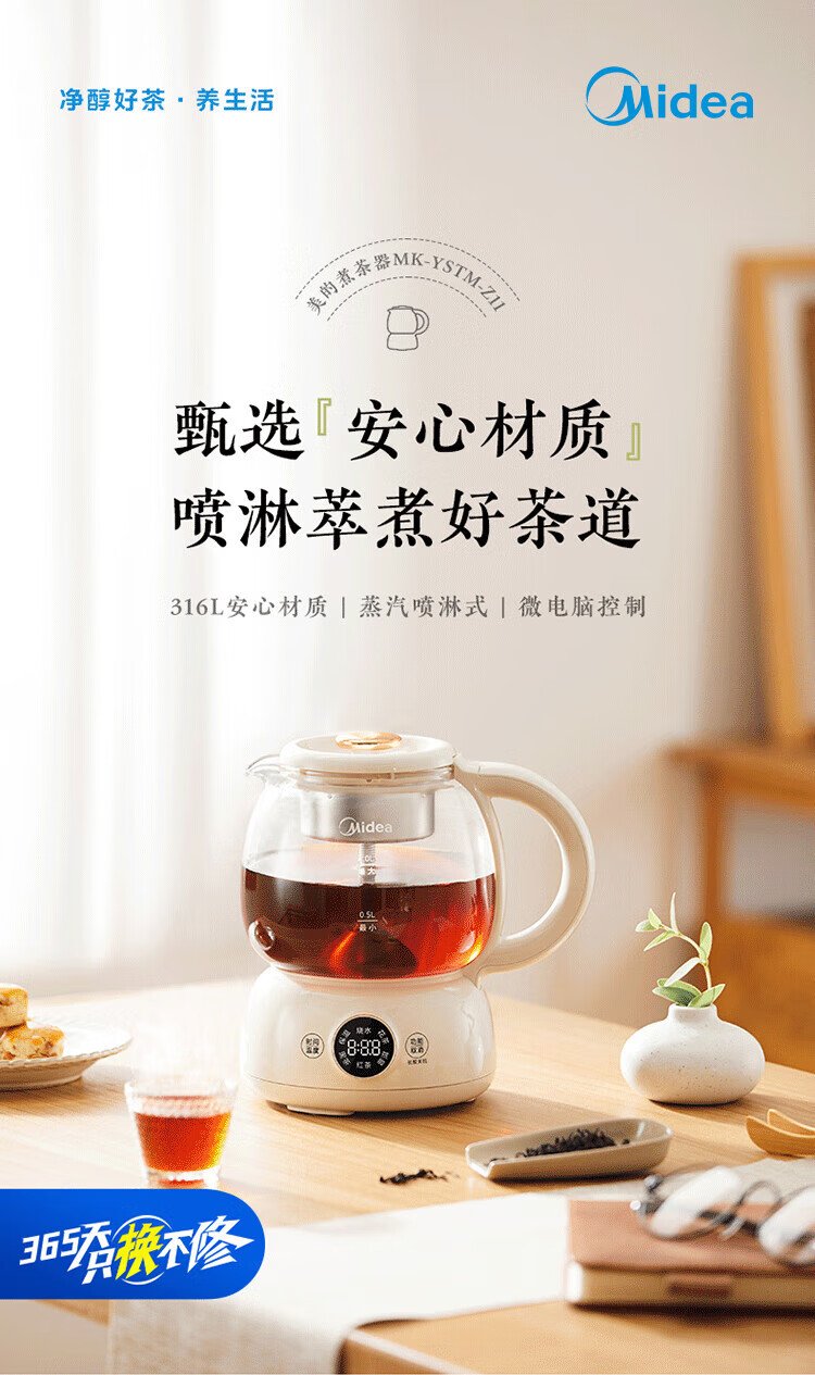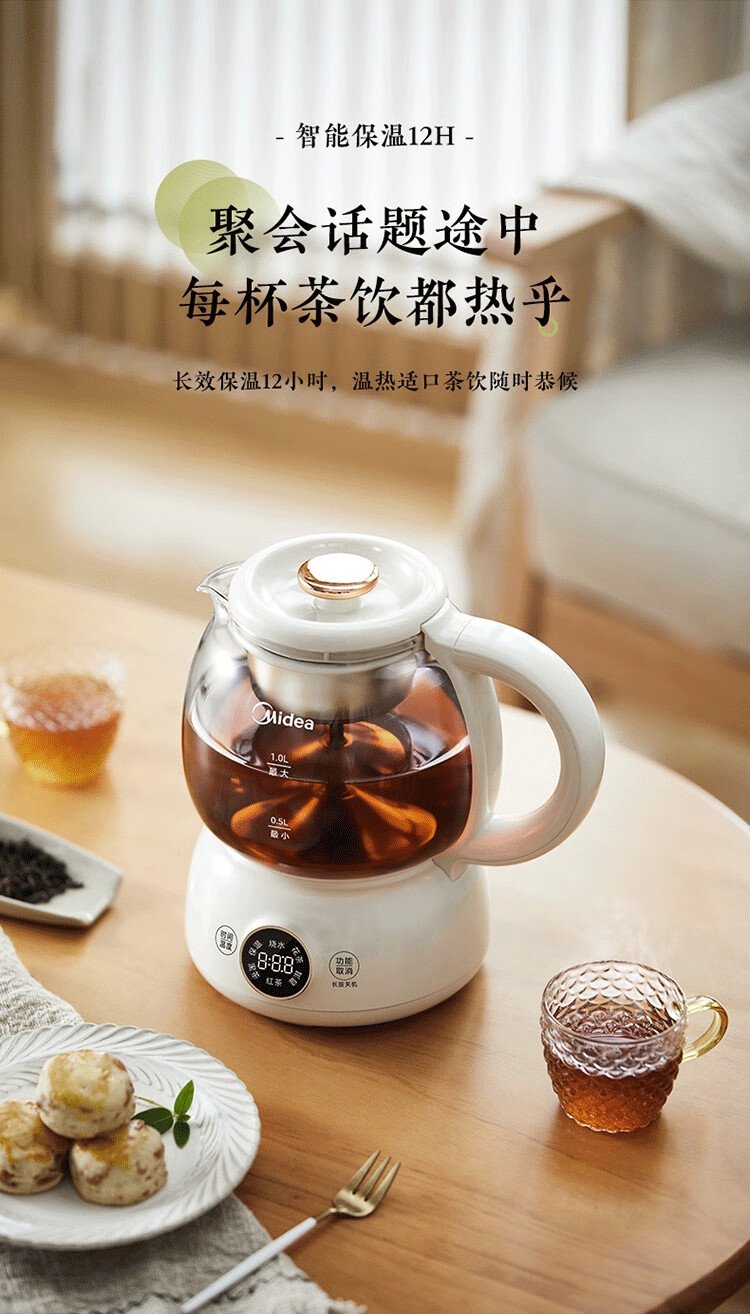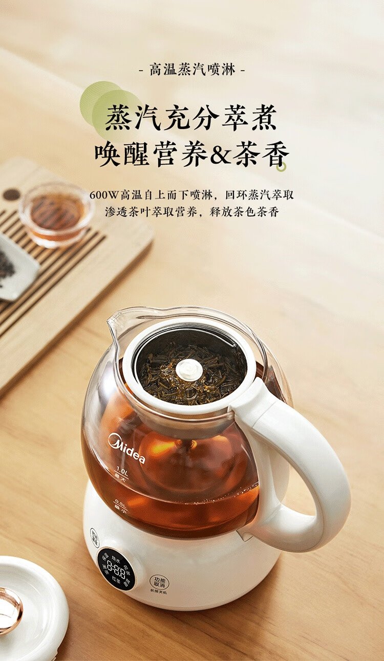 Midea tea kettle, flower tea kettle, health pot, mini constant temperature electric kettle, tea steamer, spray type 316L stainless steel kettle, black tea tea set, 1 liter YSTM-Z11