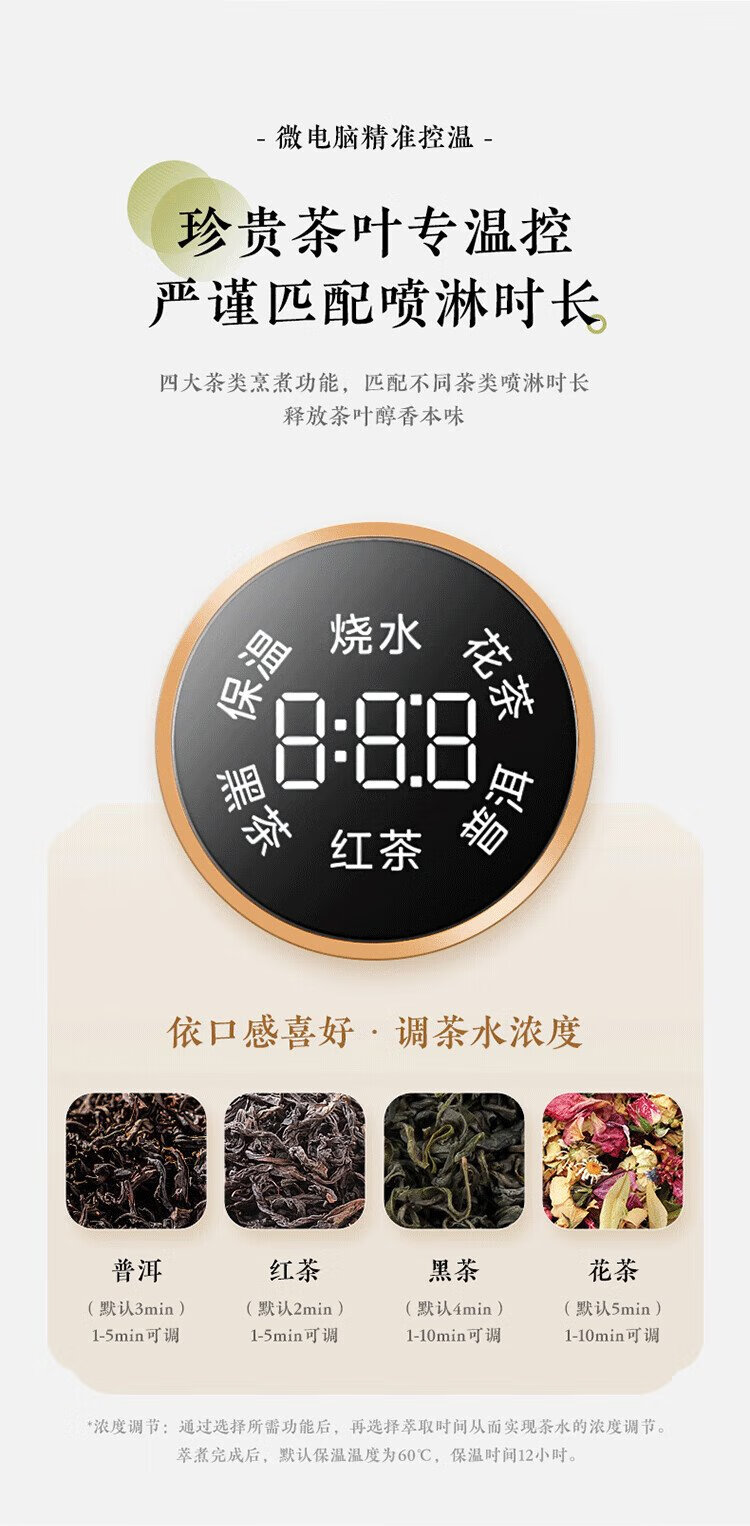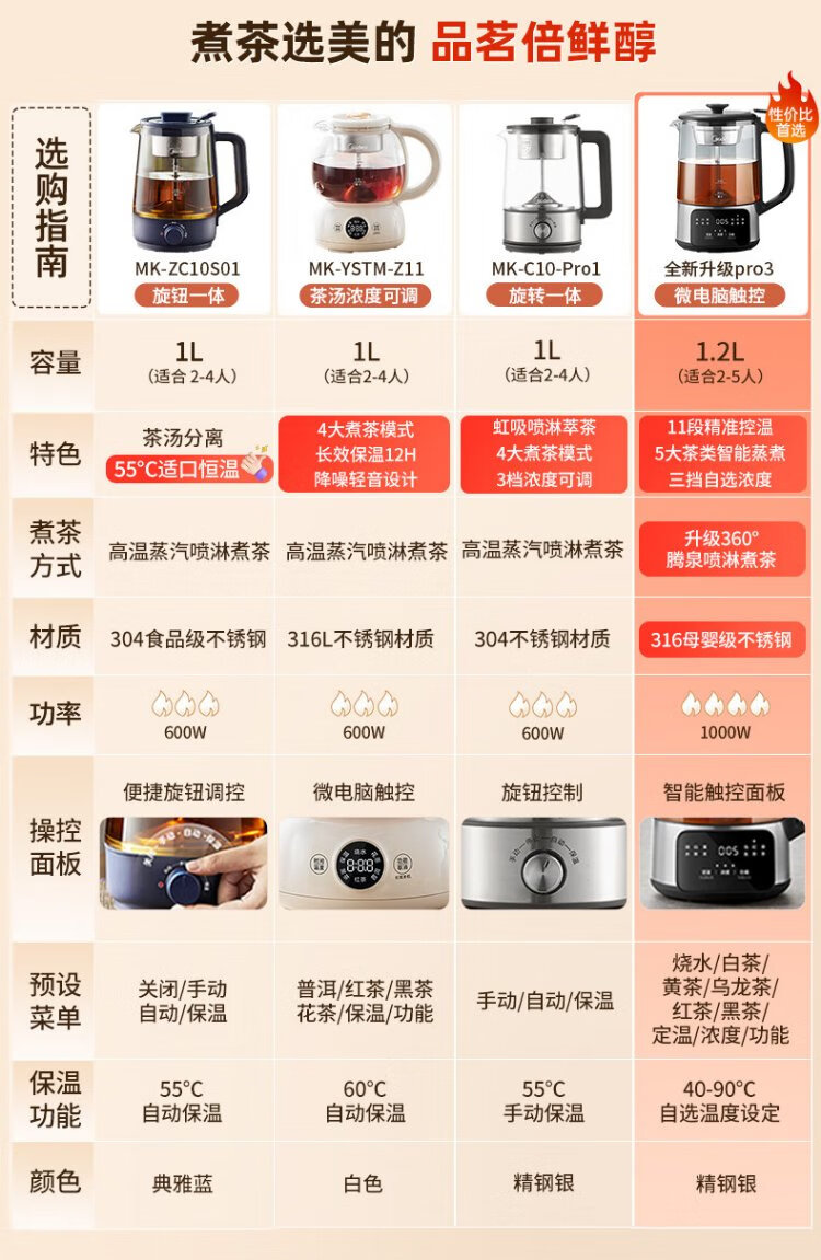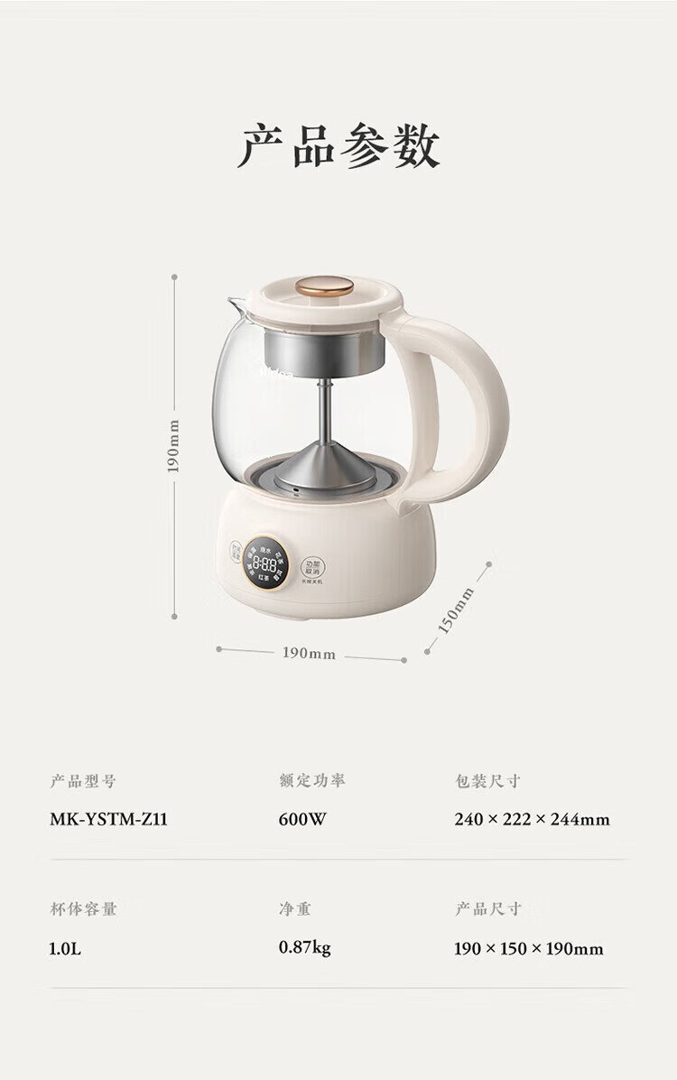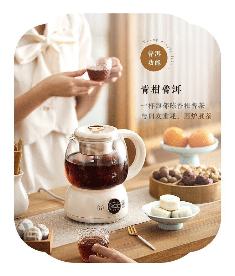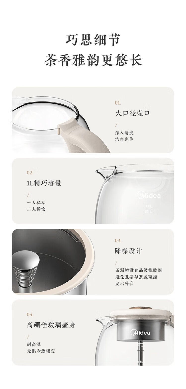 Midea tea kettle, flower tea kettle, health pot, mini constant temperature electric kettle, tea steamer, spray type 316L stainless steel kettle, black tea tea set, 1 liter YSTM-Z11