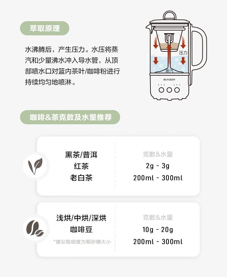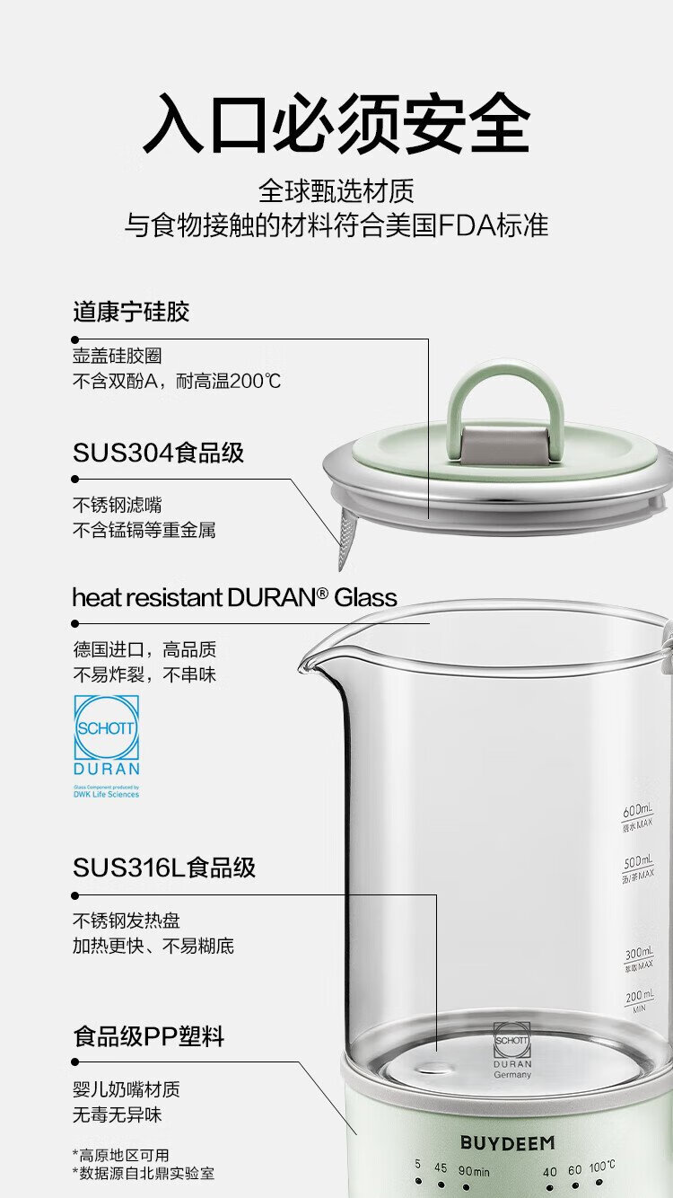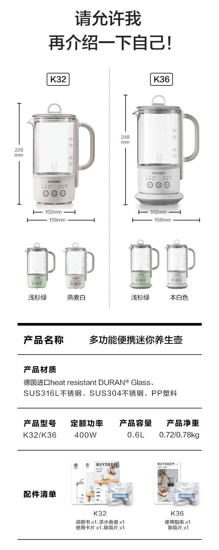 Buydeem glue-free health pot kettle mini health cup office hot water kettle tea maker K36 white (excluding extraction basket)