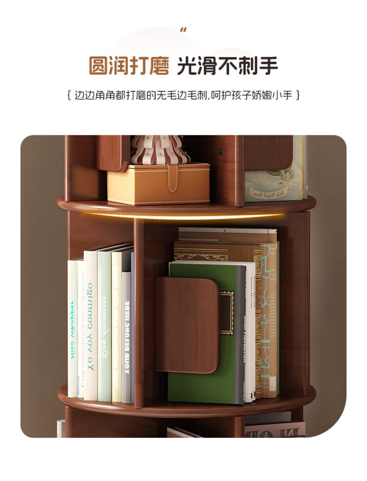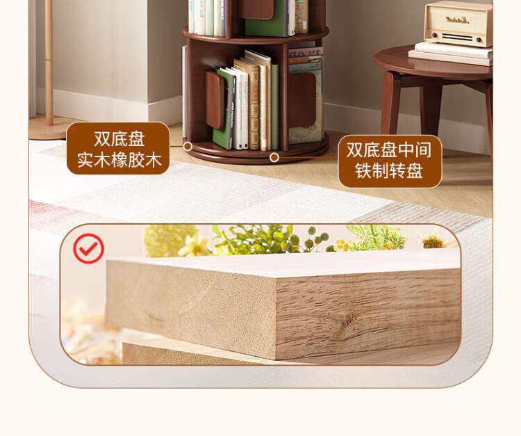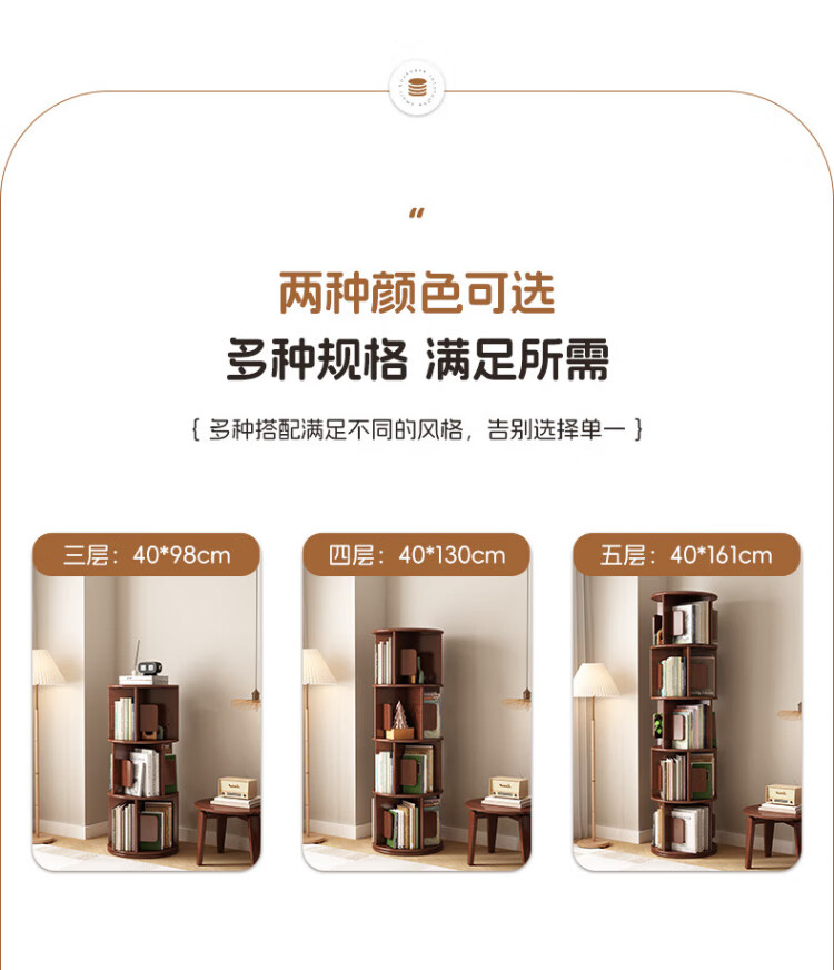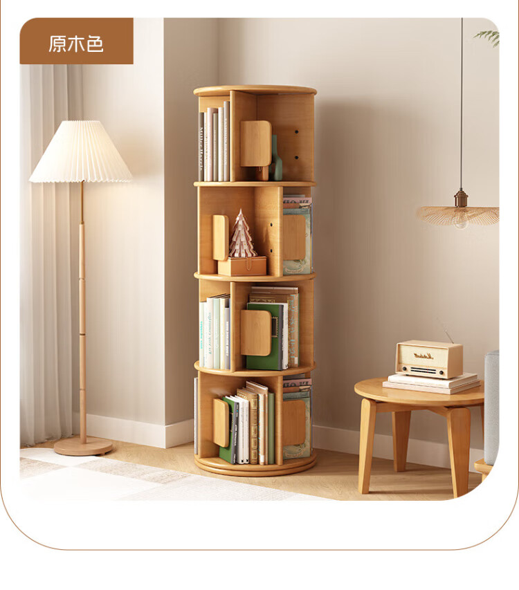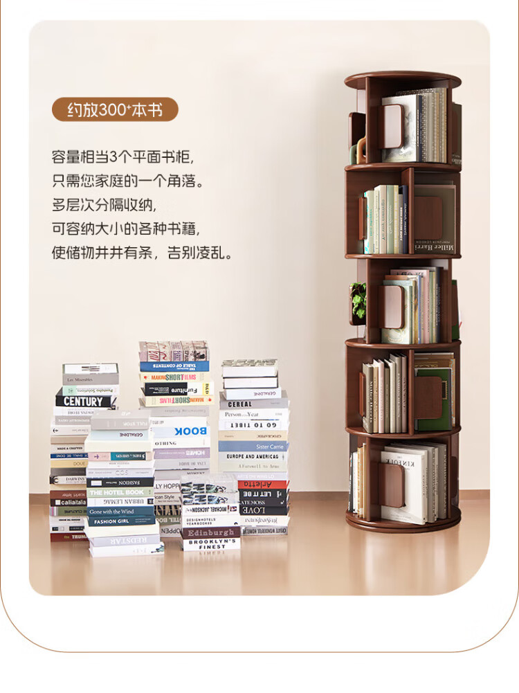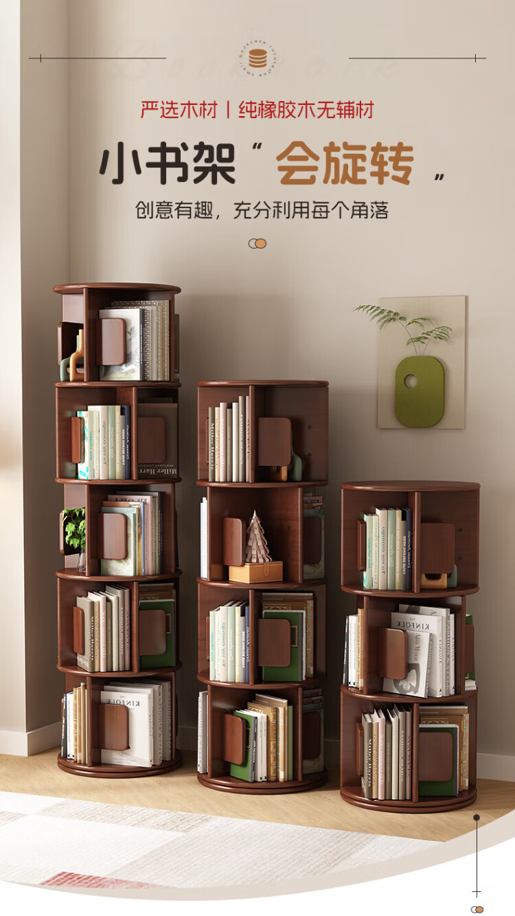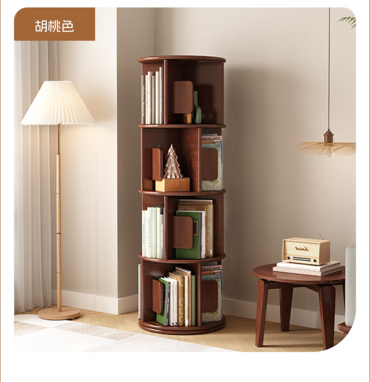 LUOSEN pure solid wood rotating bookshelf floor-standing storage rack modern simple storage rack 360 degree simple storage rack 5-layer walnut