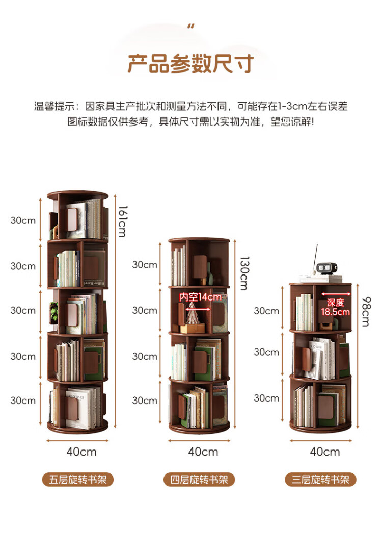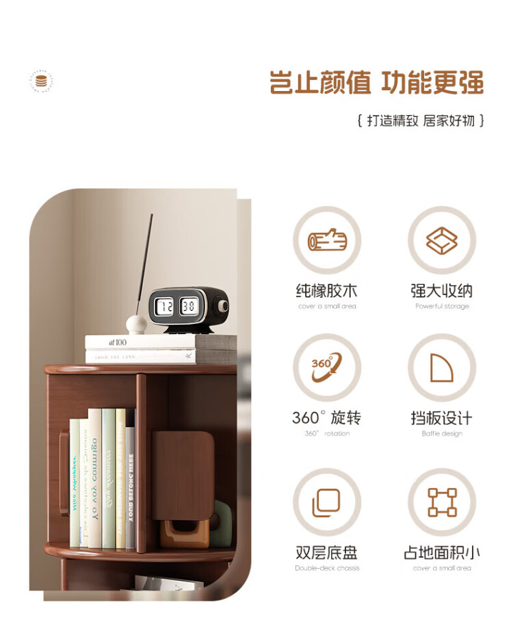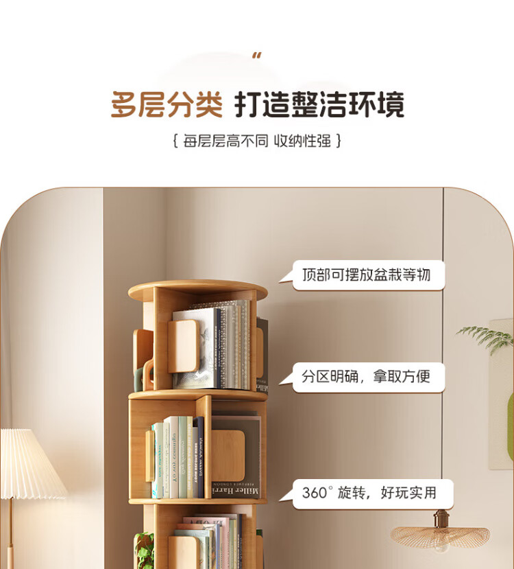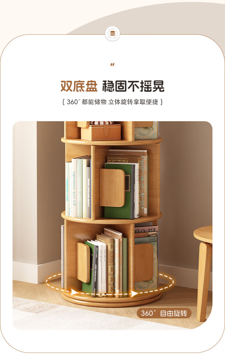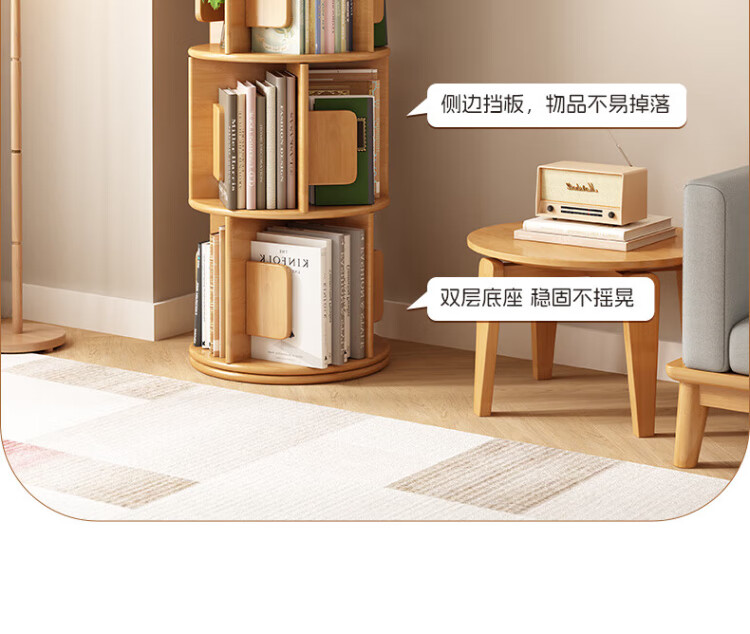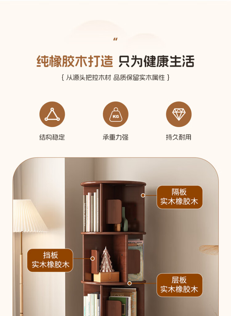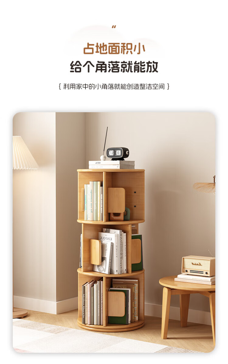 LUOSEN pure solid wood rotating bookshelf floor-standing storage rack modern simple storage rack 360 degree simple storage rack 5-layer walnut