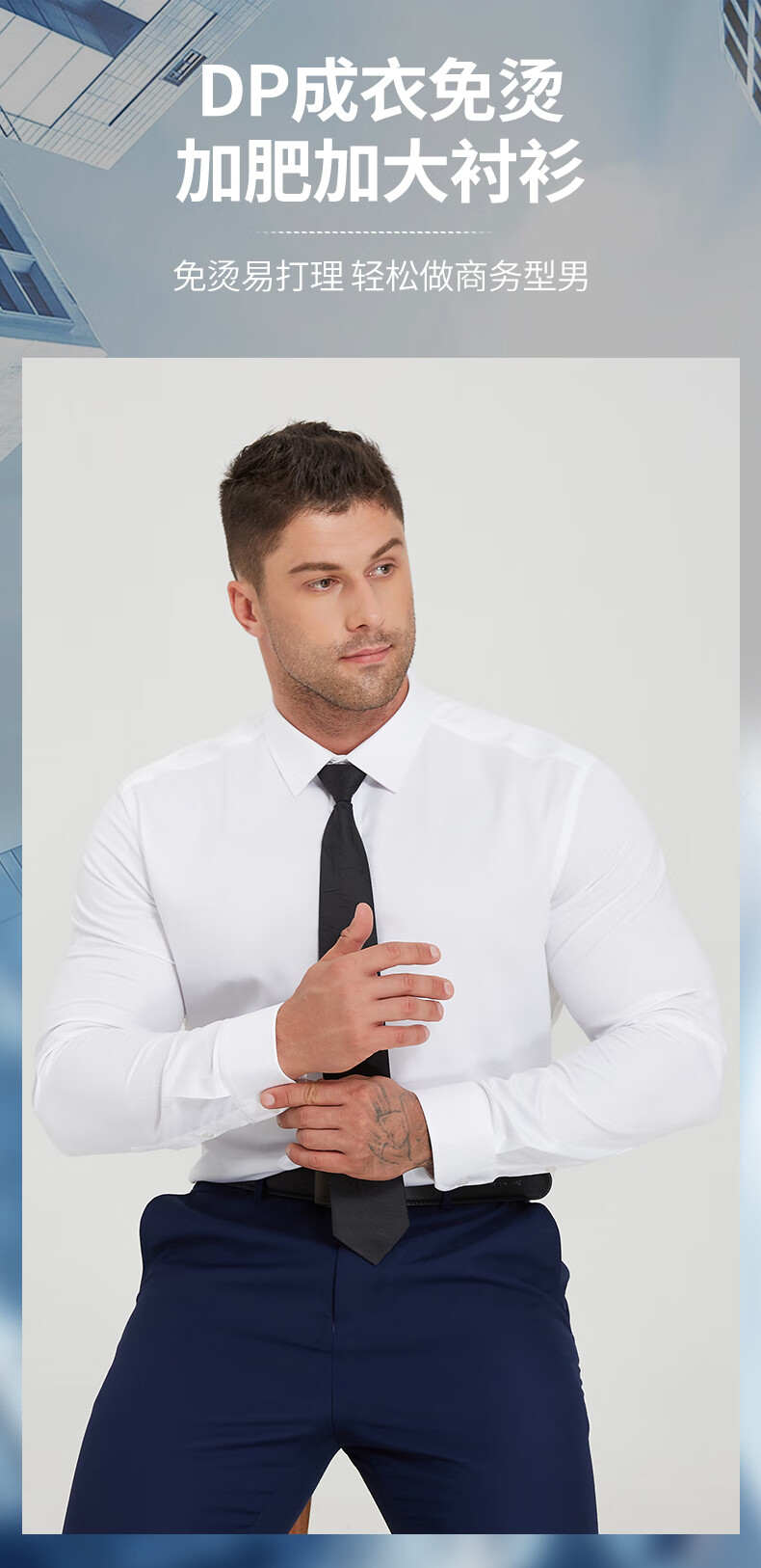 Dibinze large size long-sleeved shirt men's plus size loose white DP non-iron anti-wrinkle easy care pure cotton high-end white shirt