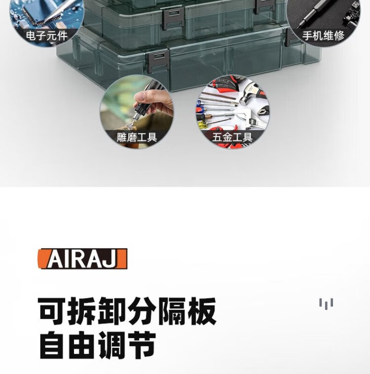 Arrizo Parts Storage Box Transparent Parts Box Small Grid Detachable Electronic Components Accessories Box Sample Box 10 Grids