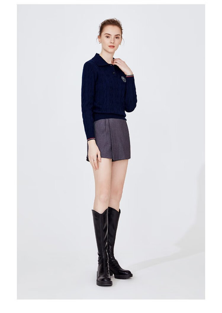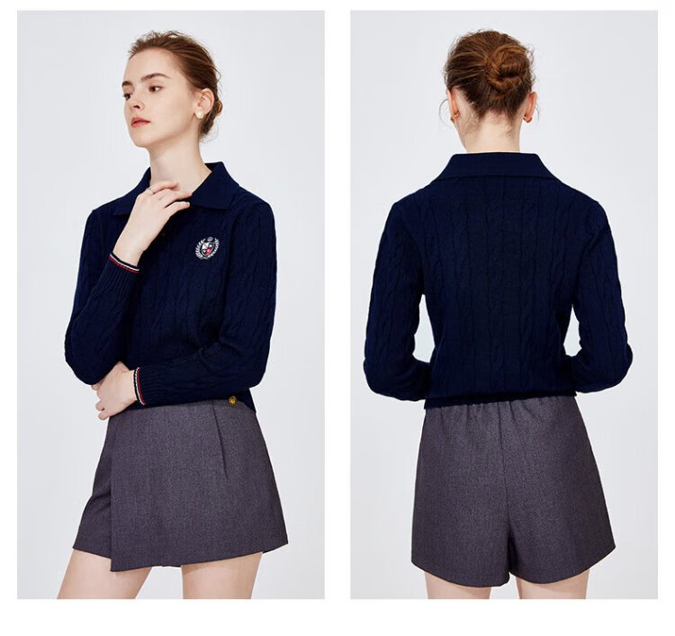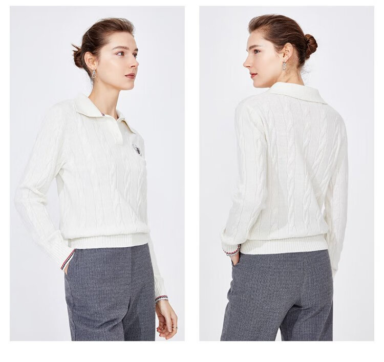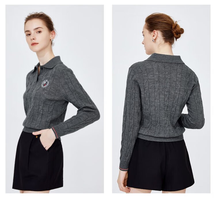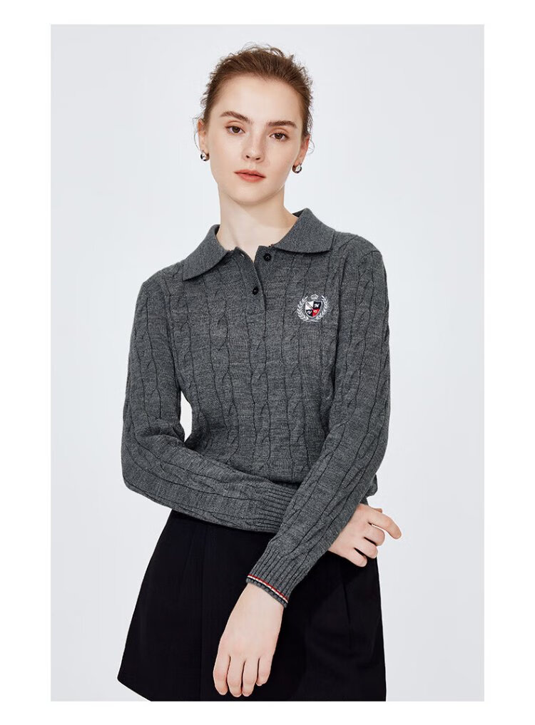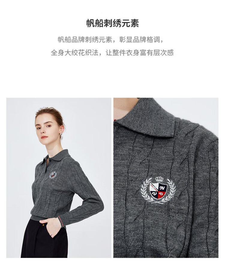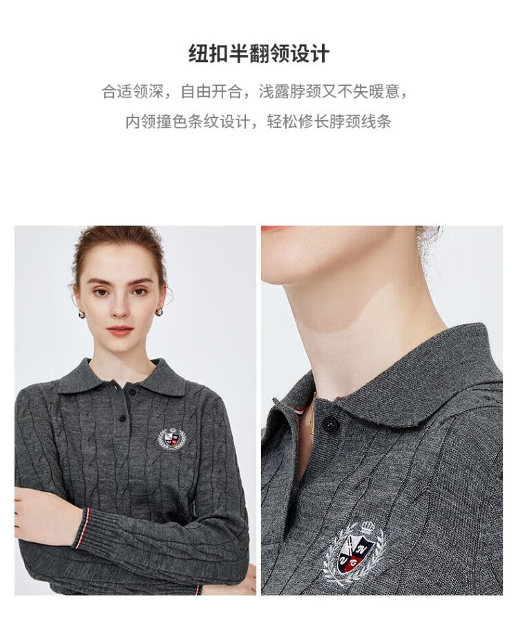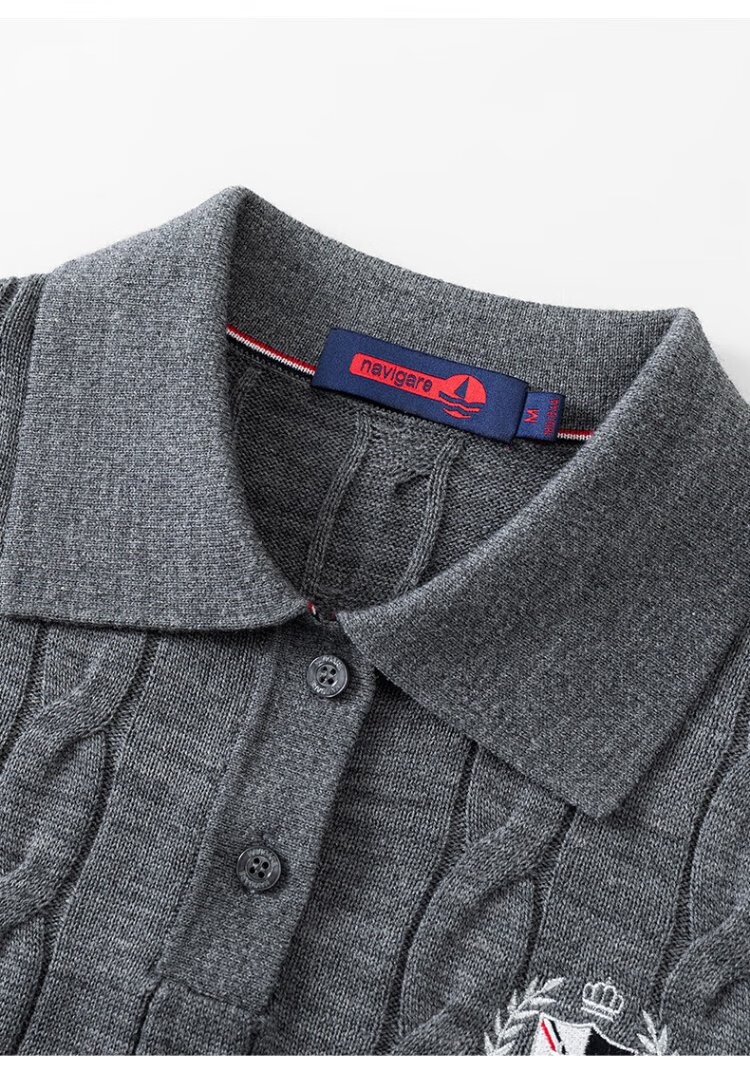 Navigare Italian dinghy women's lapel sweater skin-friendly cable casual sweater 2334023502 Gray XL