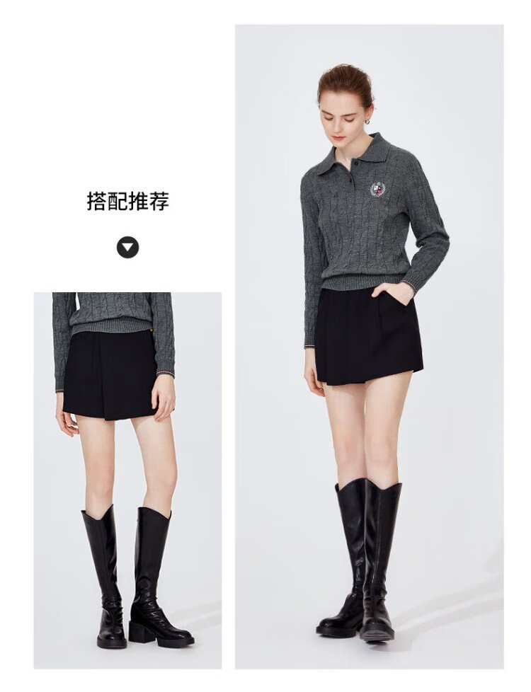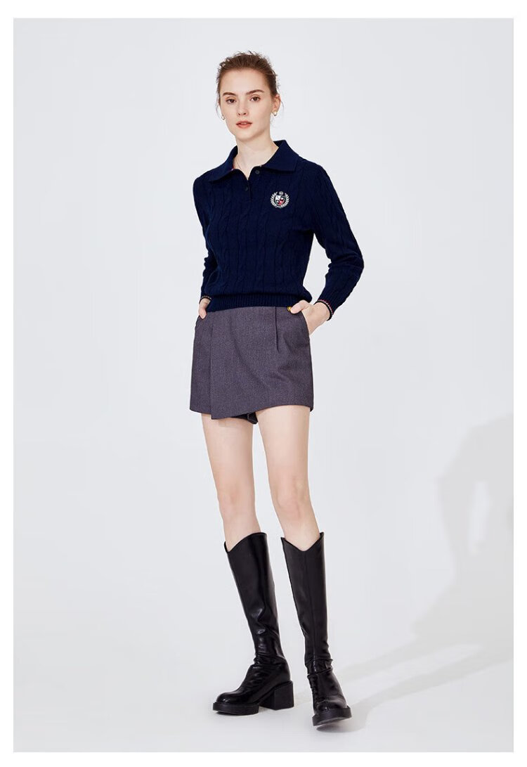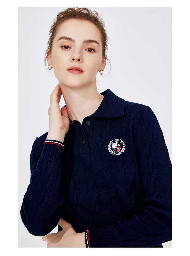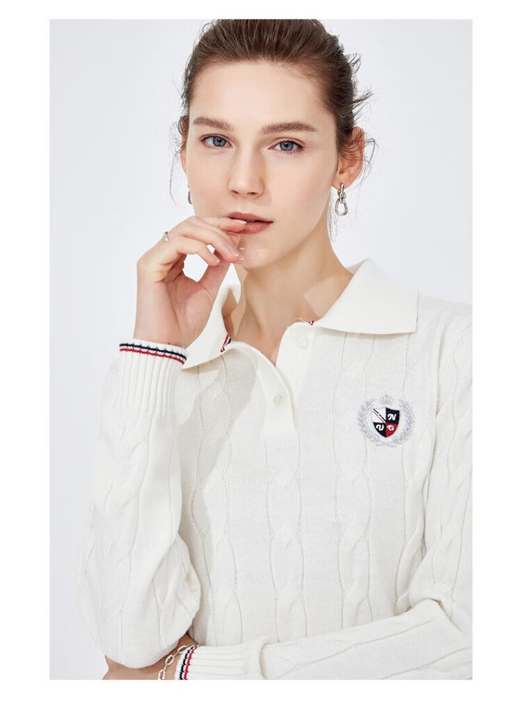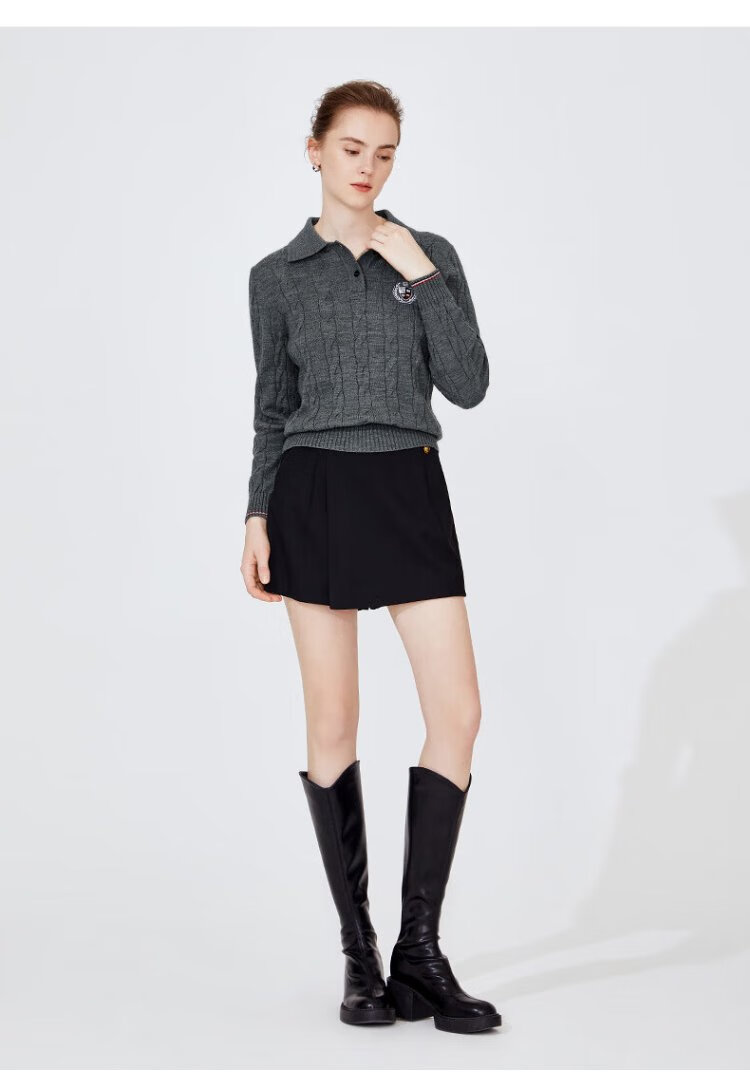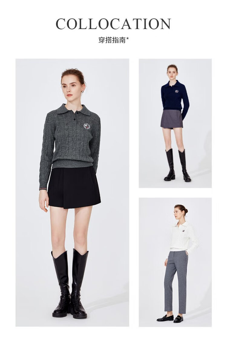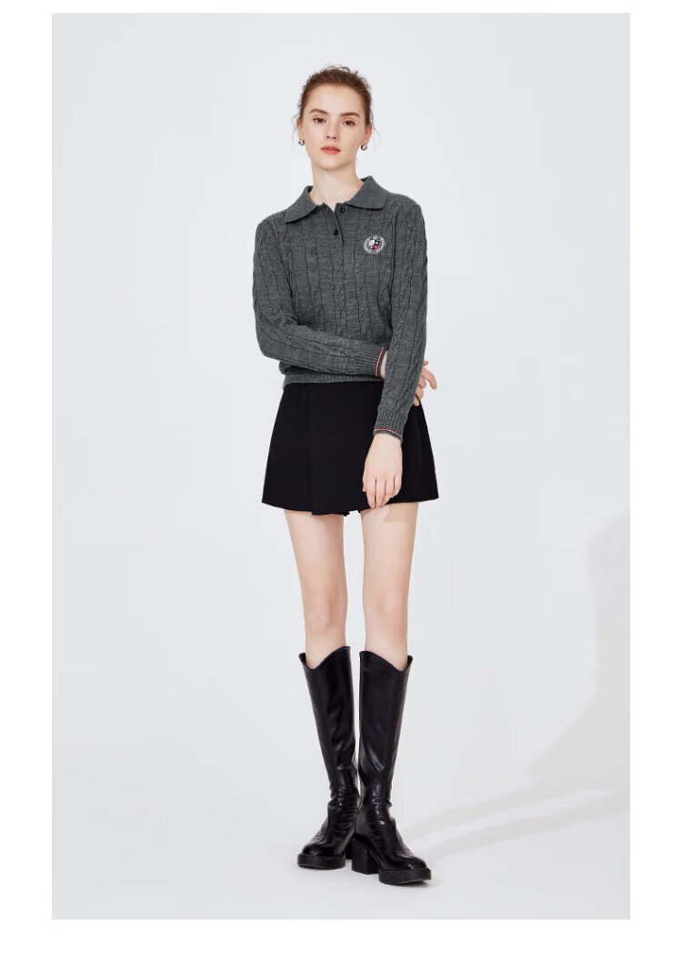 Navigare Italian dinghy women's lapel sweater skin-friendly cable casual sweater 2334023502 Gray XL