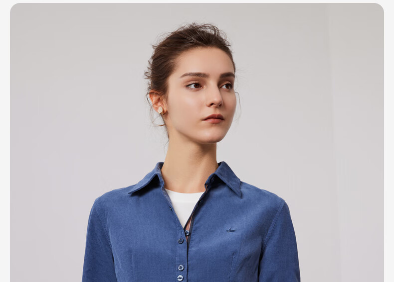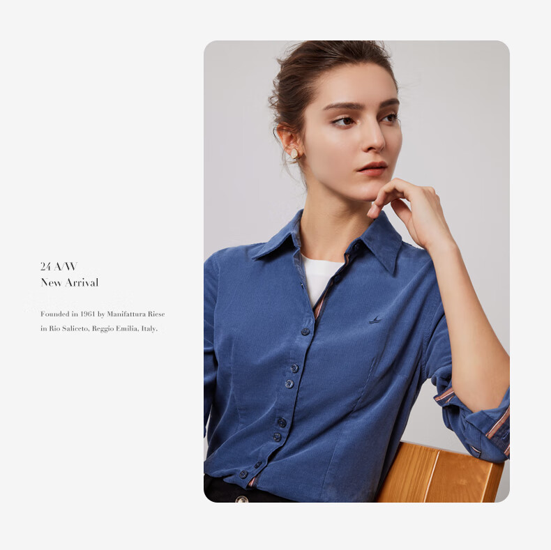 Navikel Italian dinghy women's cotton long-sleeved shirt corduroy slim shirt 2333003506 dark blue XL