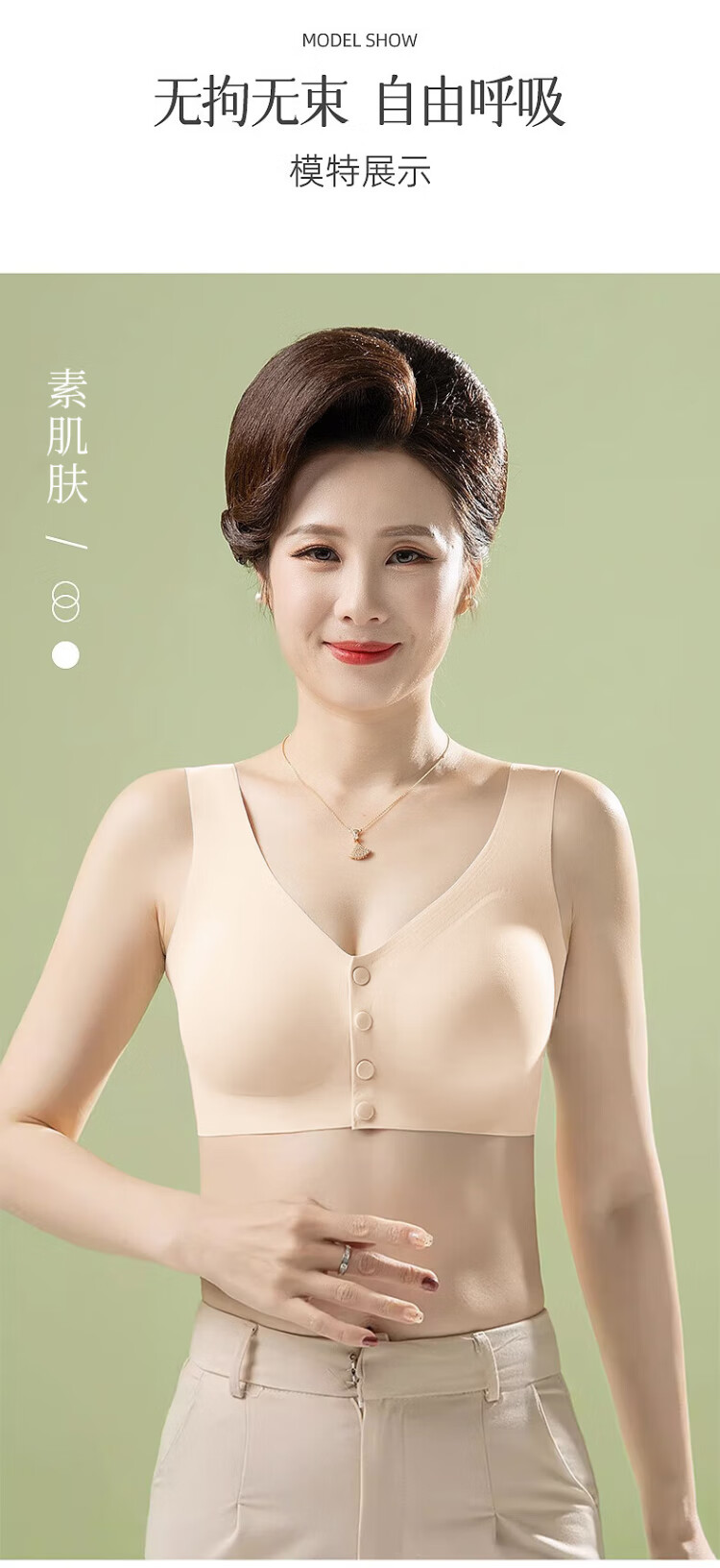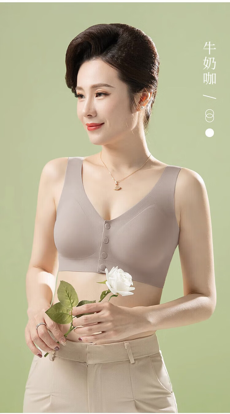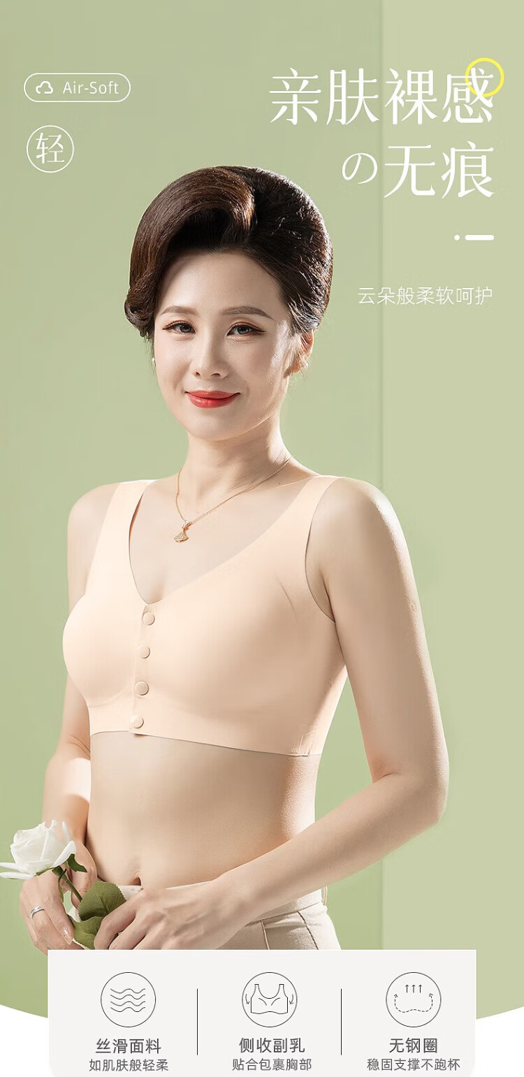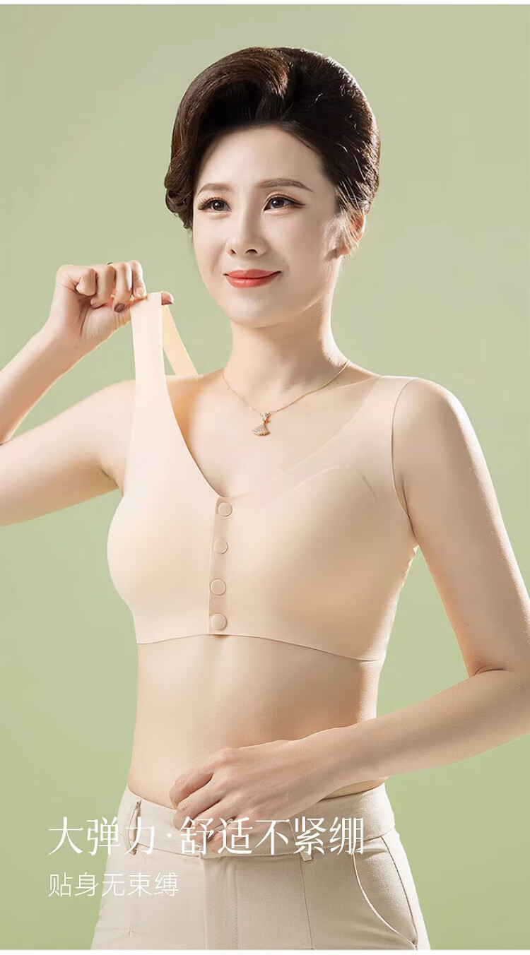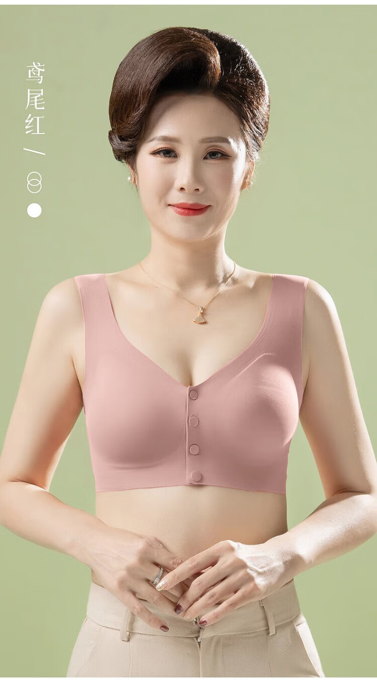 Langsha underwear women's vest front button bra top-up anti-sagging no steel ring seamless large size bra for middle-aged and elderly people