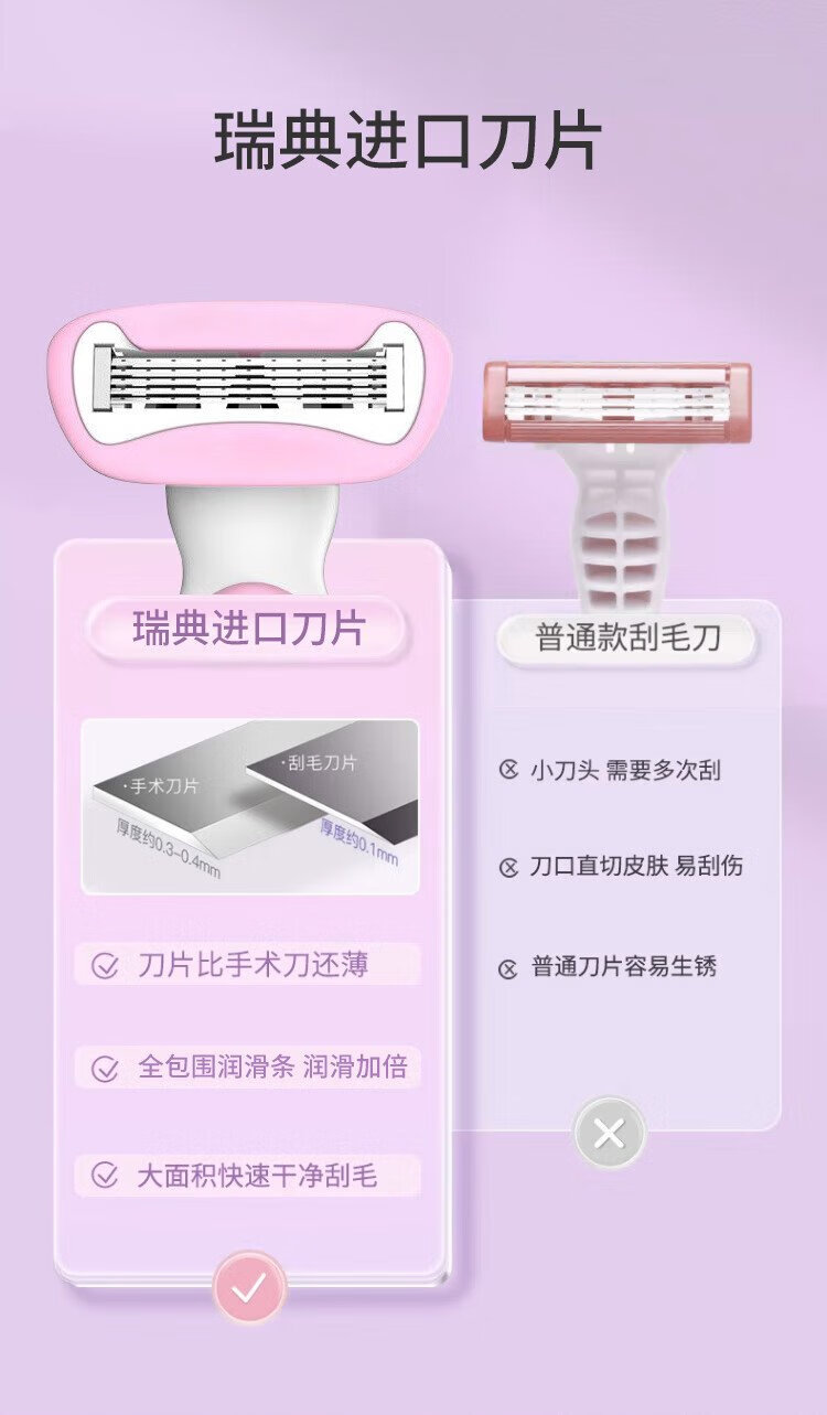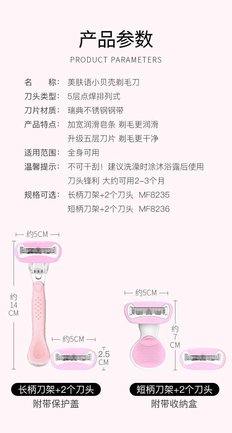 Skincare long-handled shaver five-layer shaver 1 blade holder 2 blades hair removal knife women's underarm private part shaver MF8235