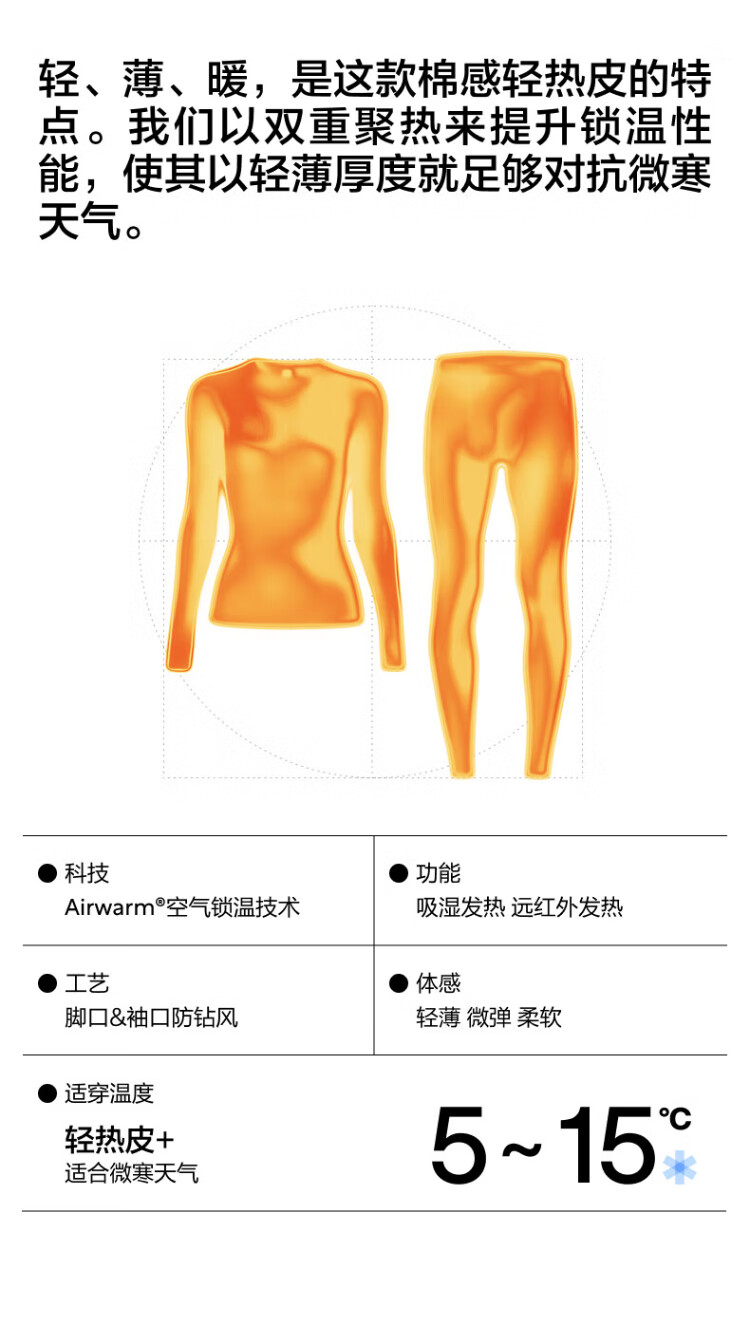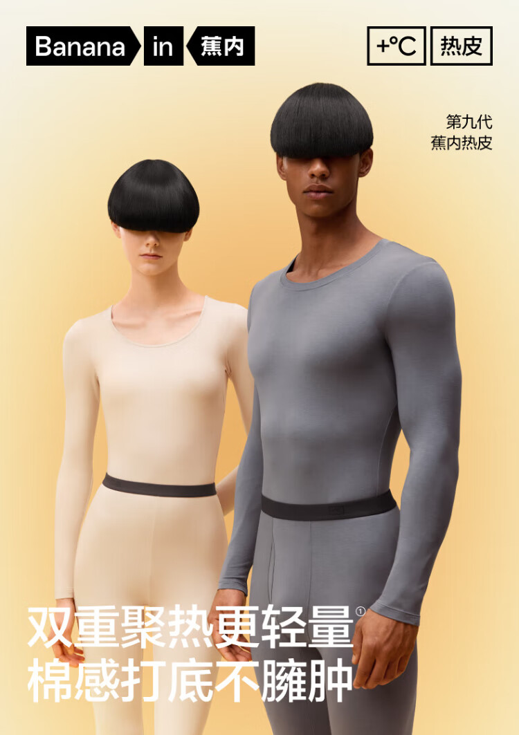 蕉内热皮3系男女士保暖内衣套装棉感秋衣秋裤锁温棉感打底衣秋冬季