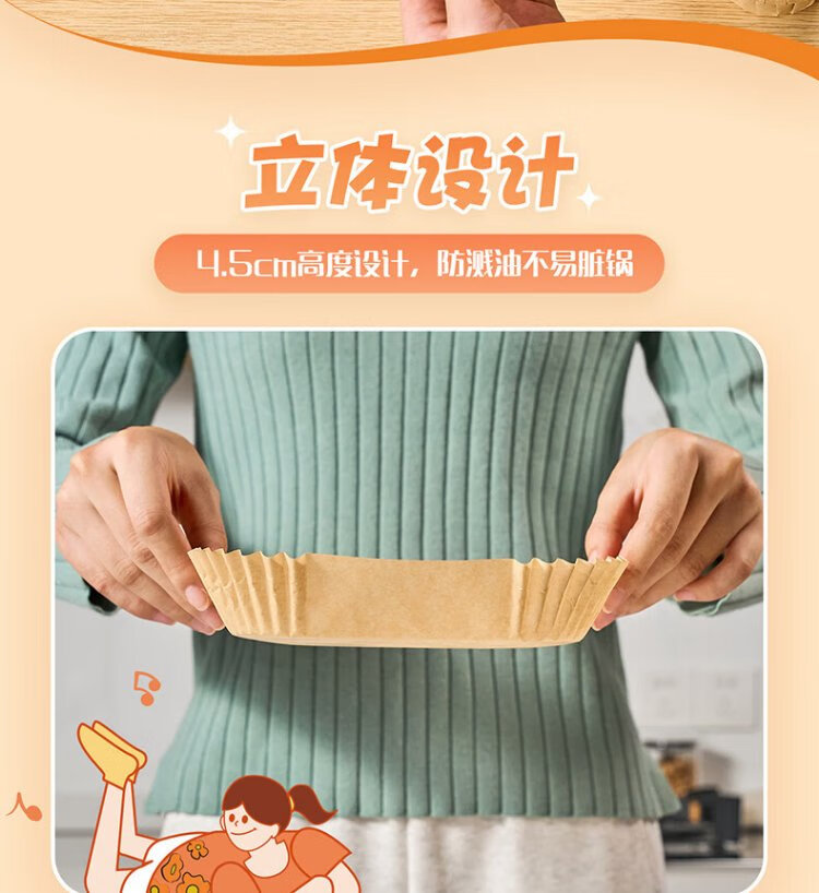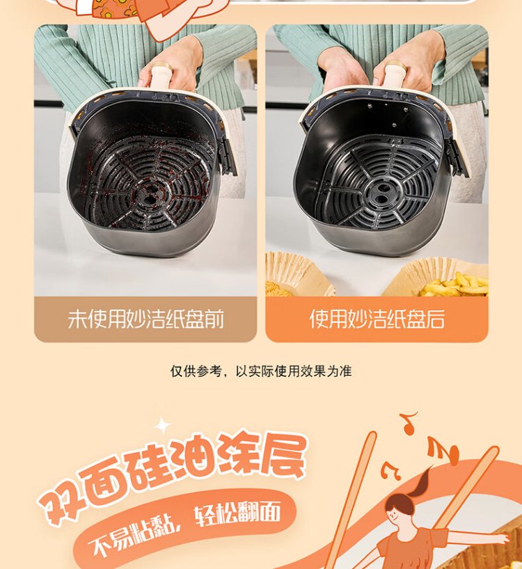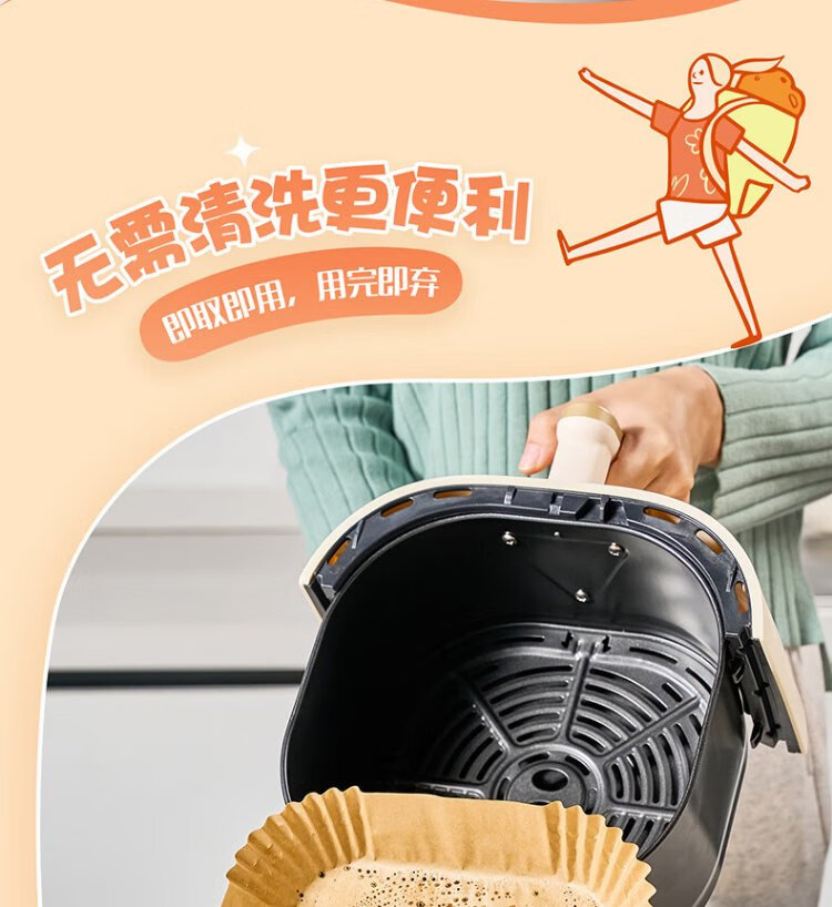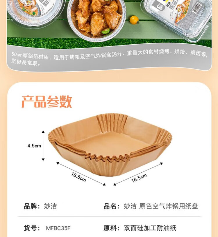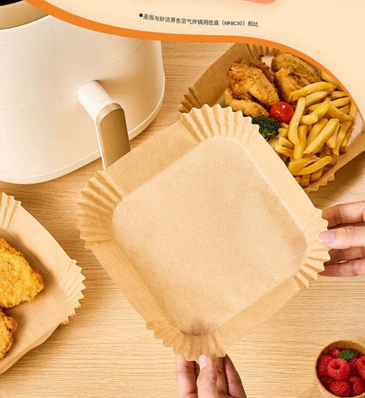 Miaojie original color air fryer special square paper plate 35 pieces, barbecue plate oil-absorbing paper for baking, double-sided natural color silicone oil paper