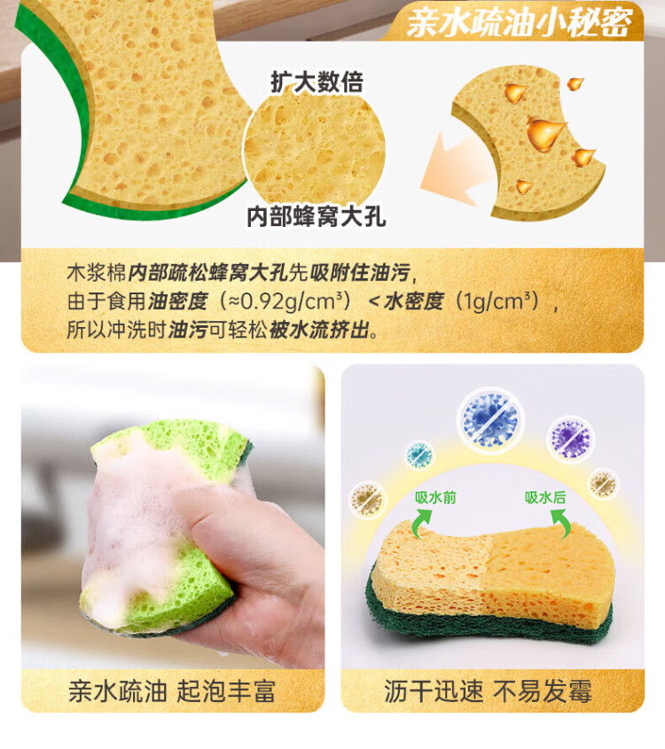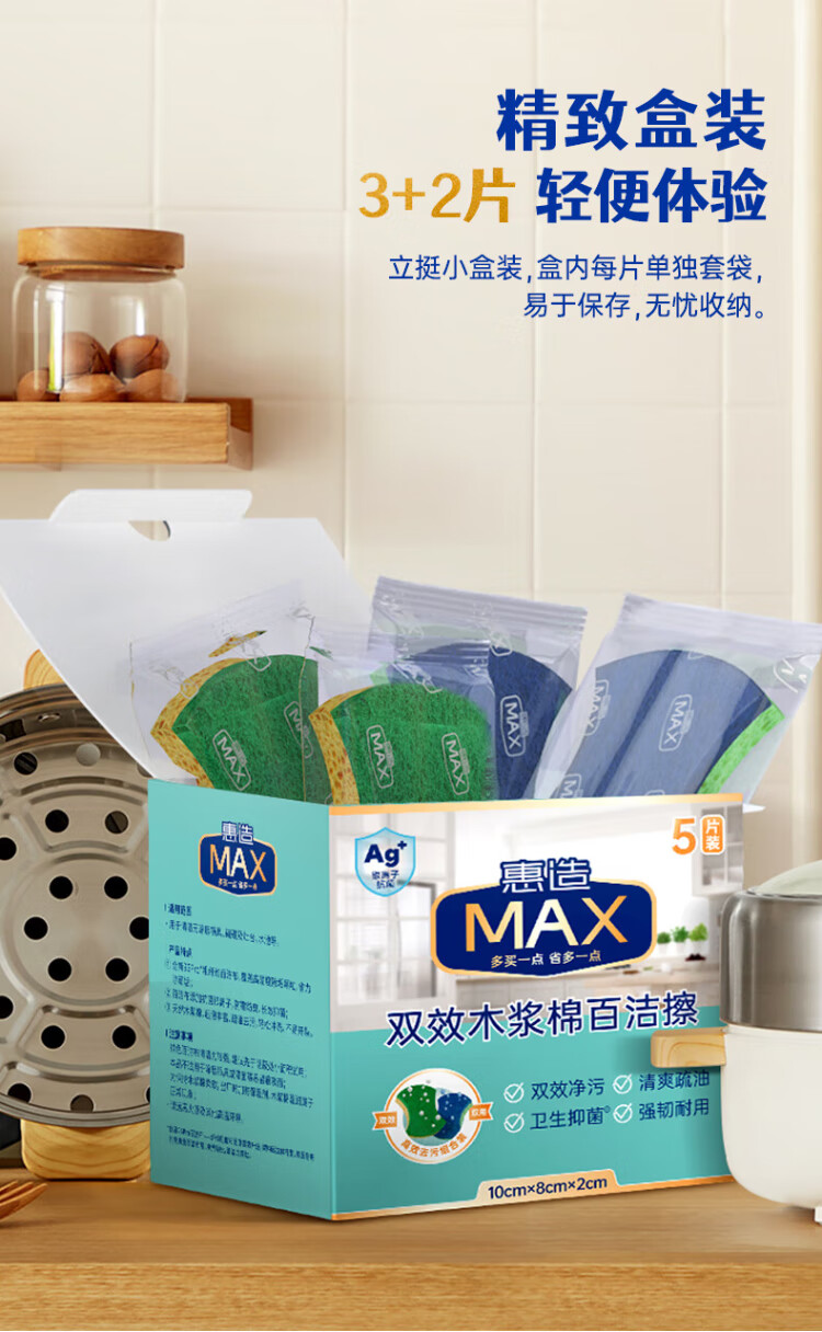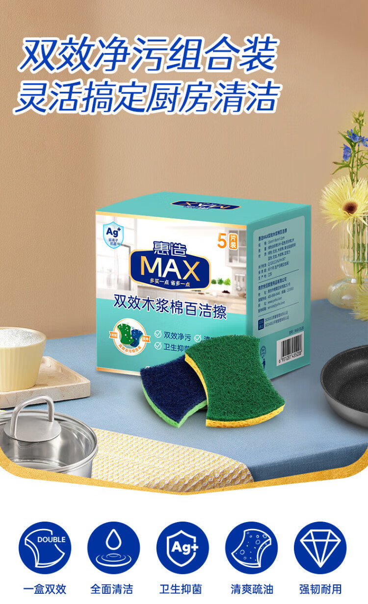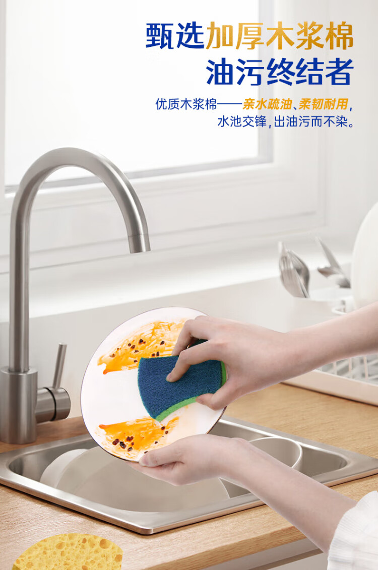 Huizao antibacterial degreasing dishwashing sponge wipe block 5 pieces emery wood pulp cotton scouring pad brush pot artifact kitchen rag