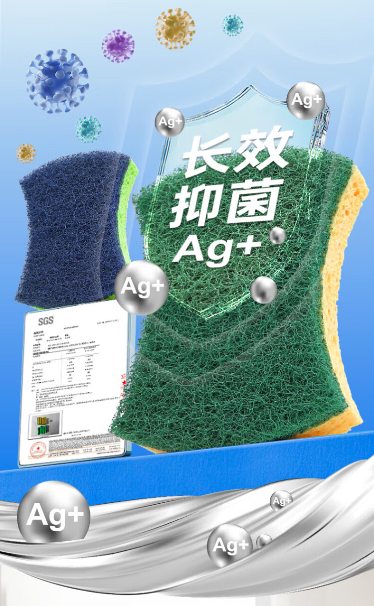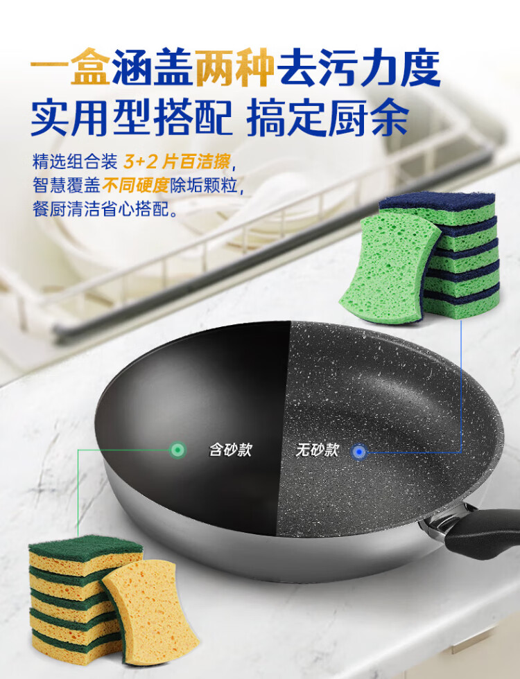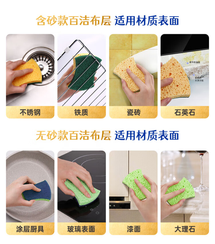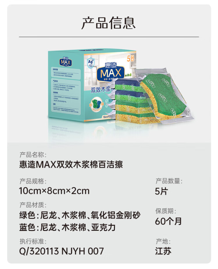 Huizao antibacterial degreasing dishwashing sponge wipe block 5 pieces emery wood pulp cotton scouring pad brush pot artifact kitchen rag